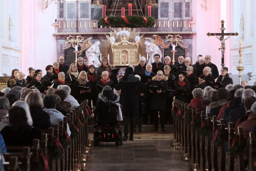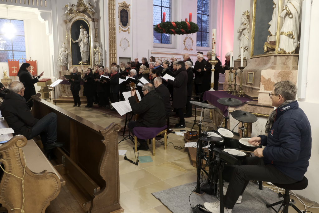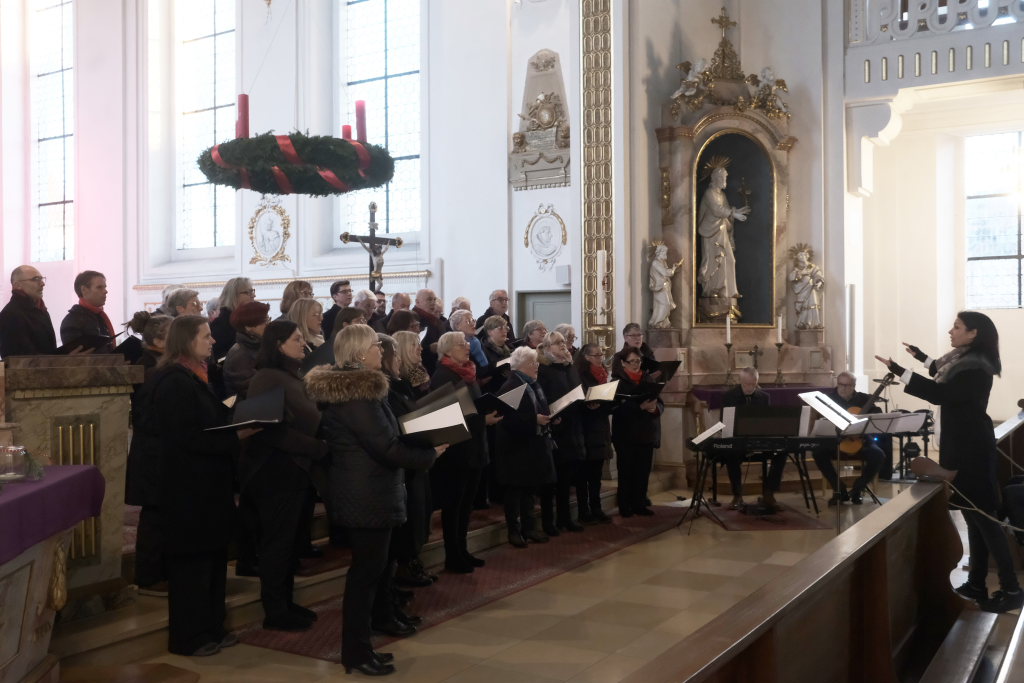 Bad Wurzach – Zum zweiten Mal füllte der Liederkranz Chorioso Bad Wurzach mit seinem traditionellen Adventskonzert die St. Verena Kirche. Gemeinsam mit seinen musikalischen Gästen Tim Guler, Robert Häusle, Rainer Uhl und Siegfried Sgier boten die Sängerinnen und Sänger unter der Leitung von Katja Ehrat ein abwechslungsreiches und anspruchsvolles Programm.