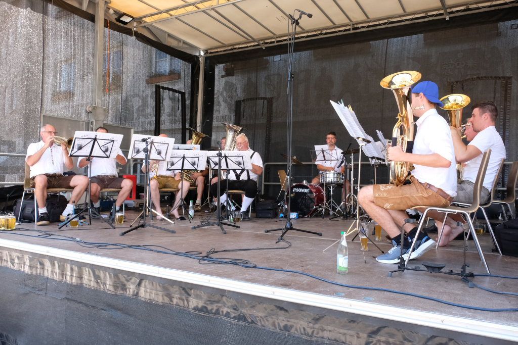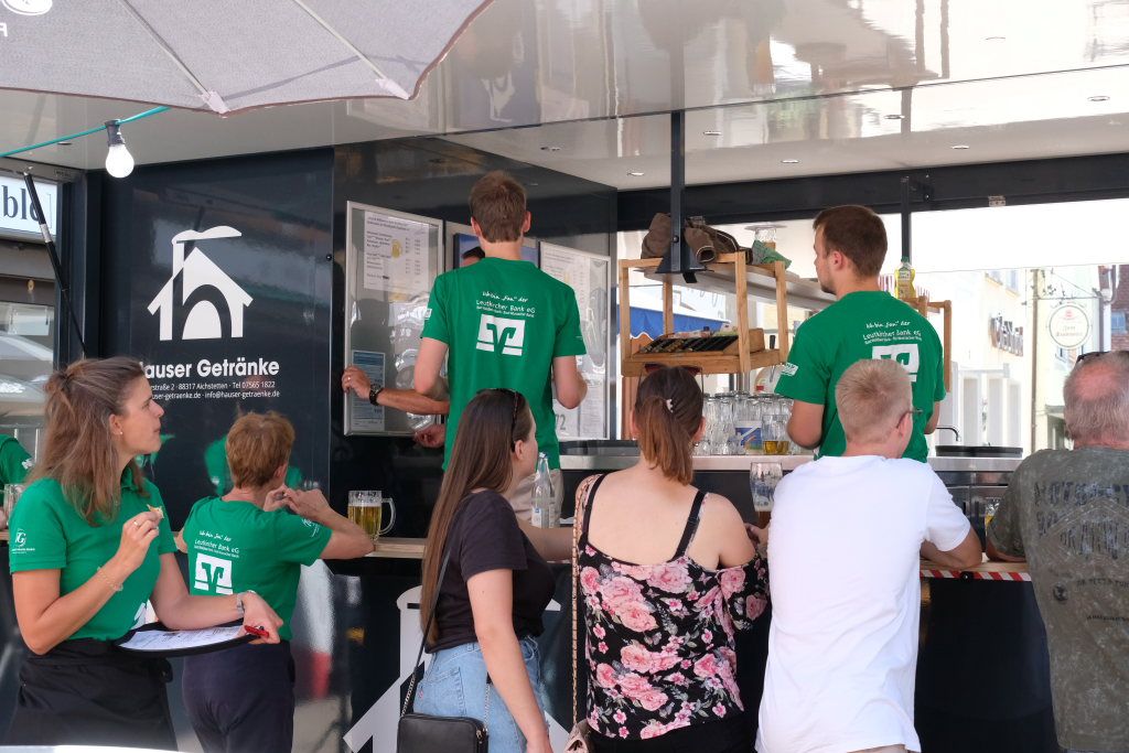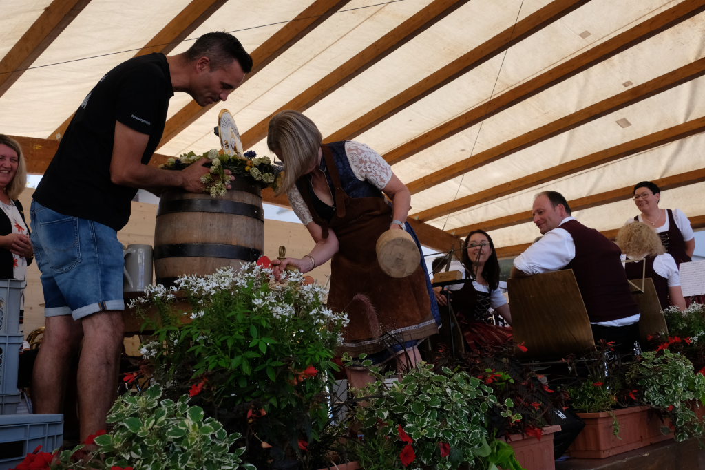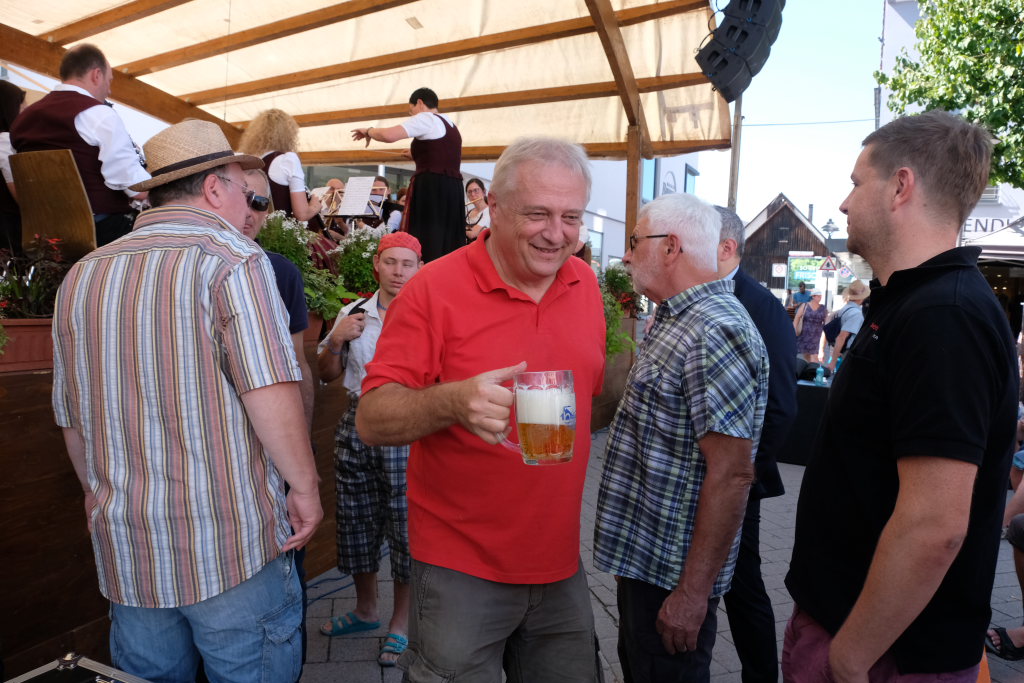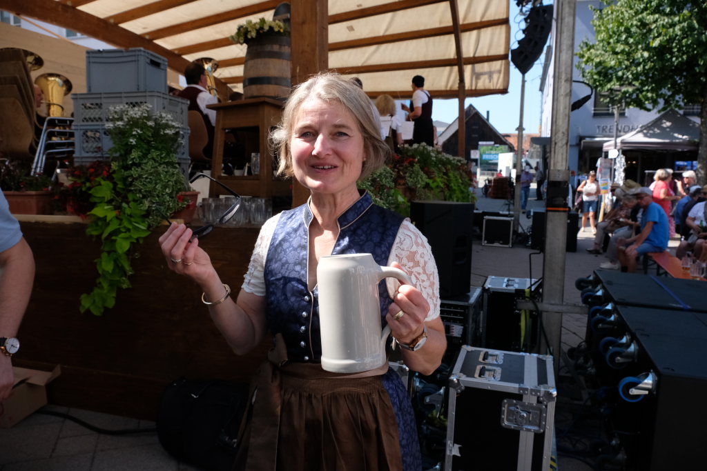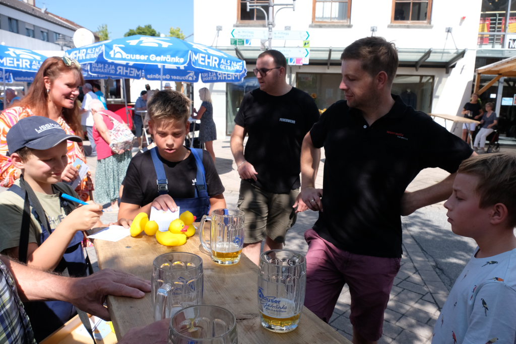Bad Wurzach – Mit dem traditionellen Fassanstich durch die HGV-Vorsitzende und einem kleinen Grußwort von Bürgermeisterin Alexandra Scherer wurde das diesjährige Bad Wurzacher Stadtfest gemeinsam mit der Stadtkapelle unter der Leitung von Petra Springer bei hochsommerlichen Temperaturen auf der großen Bühne beim Spital eröffnet. Doch schon zuvor herrschte große Betriebsamkeit in den Straßen, als die Schnäppchen-Jäger über den Flohmarkt flanierten.