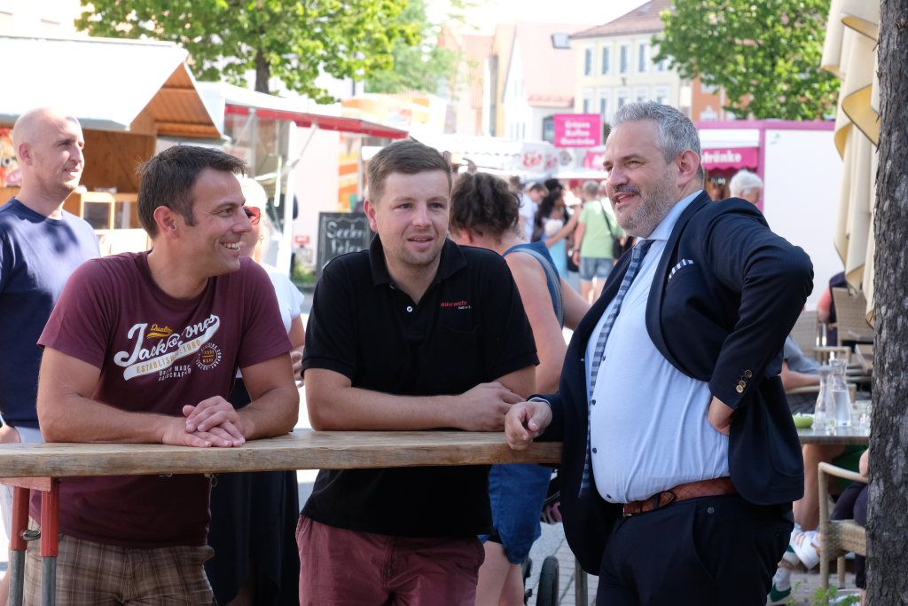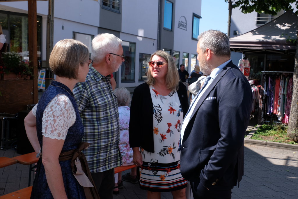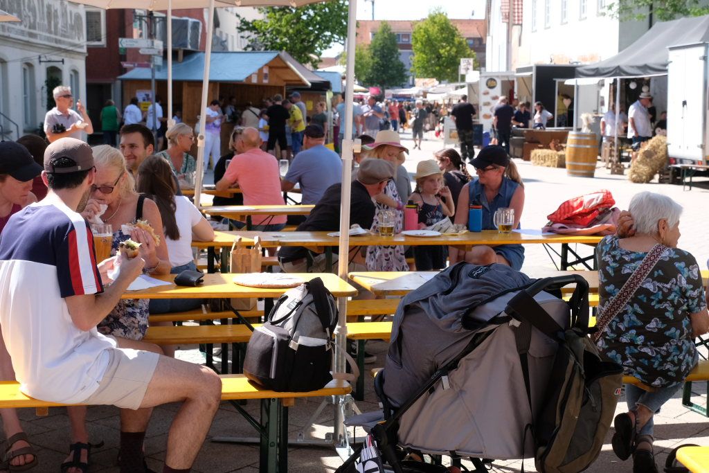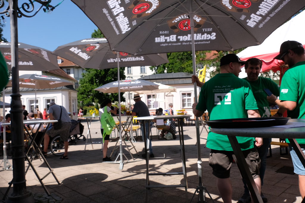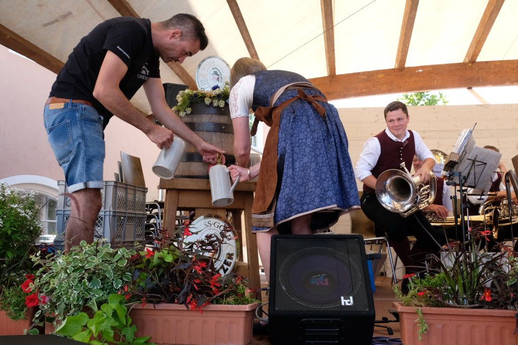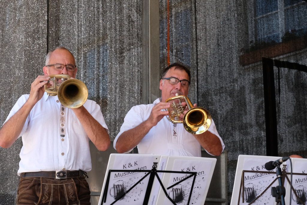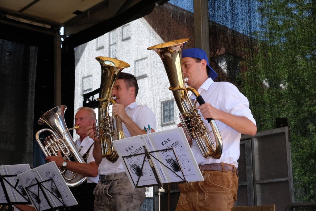 Bad Wurzach – Mit dem traditionellen Fassanstich durch die HGV-Vorsitzende und einem kleinen Grußwort von Bürgermeisterin Alexandra Scherer wurde das diesjährige Bad Wurzacher Stadtfest gemeinsam mit der Stadtkapelle unter der Leitung von Petra Springer bei hochsommerlichen Temperaturen auf der großen Bühne beim Spital eröffnet. Doch schon zuvor herrschte große Betriebsamkeit in den Straßen, als die Schnäppchen-Jäger über den Flohmarkt flanierten.