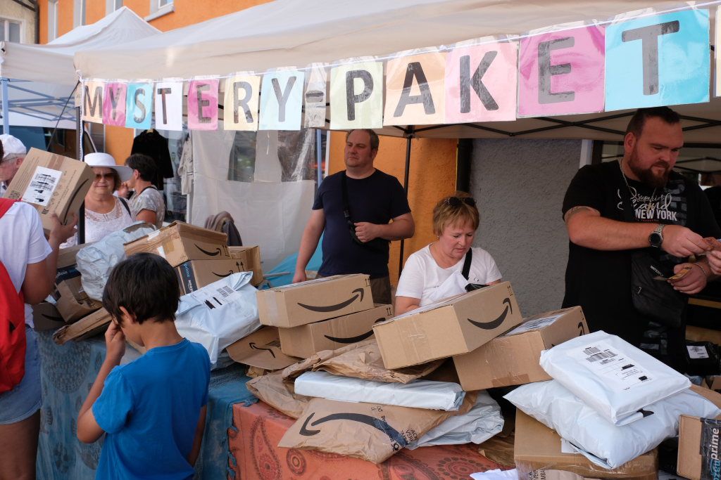 Bei den Flohmarktständen gab es zum Beispiel einen ganz besonderen Stand: Der Betreiber verkaufte den Besuchern an seinem Stand Mystery Paket einen Hauch von Blind Date, denn bei den Paketen handelte es um unzustellbare Retouren von Versandhändlern – mit völlig unbekanntem Inhalt.