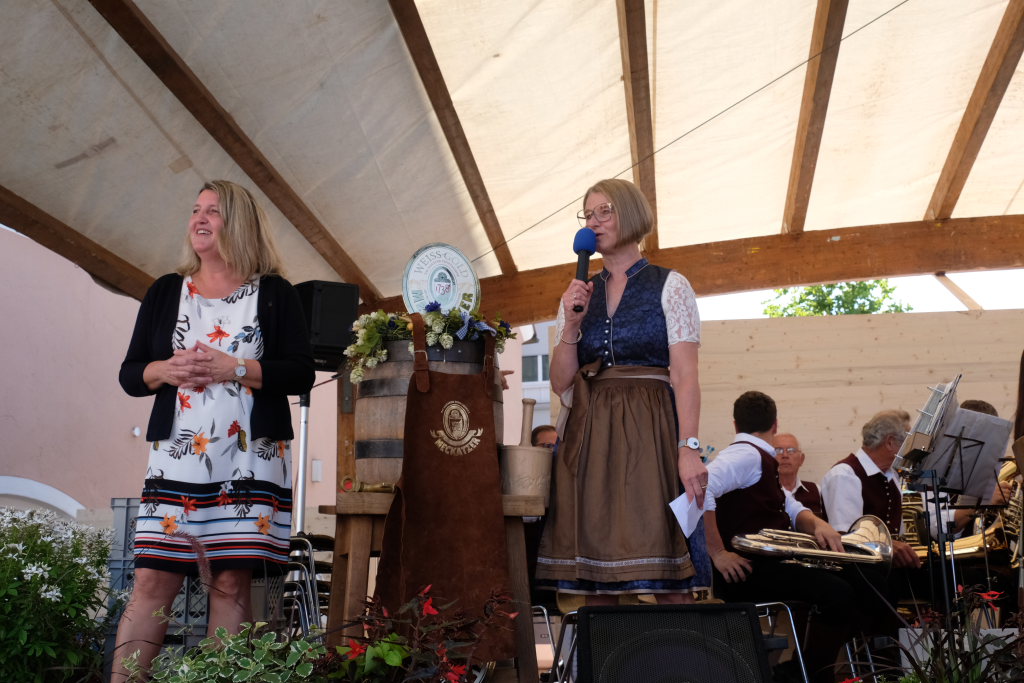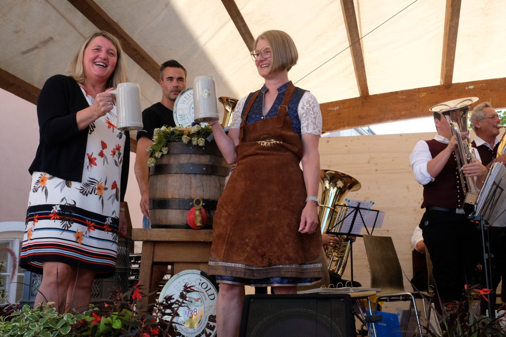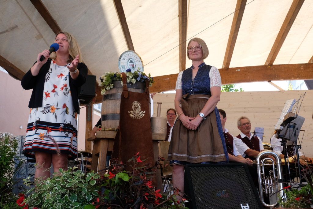 Vincon-Westermayer dankte in ihrer Begrüßung den Vereinen, ohne die das Fest, das es seit 1978 gibt, nicht durchführbar wäre. Ein besonderer Dank ging auch an Dirk Fietkau und seinem Team vom Städtischen Bauhof, der mit seinen Mannen vor, während und nach dem Fest immer bestens organisiert den Veranstaltern des HGV zur Seite steht. Bei der Bürgermeisterin bedankte sie sich, weil diese für den HGV „den bürokratischen Papierkram“ erledigt hatte. Die Bürgermeisterin wiederum bedankte sich beim Vorstandsteam des HGV, weil das Fest nicht nur von Freitag bis Sonntag Arbeit macht, sondern schon einige Zeit davor und danach.