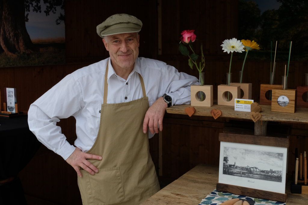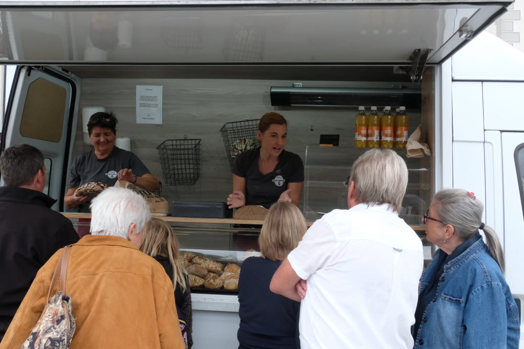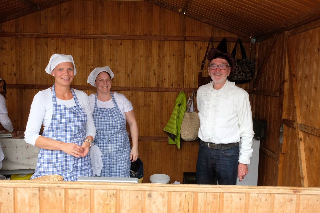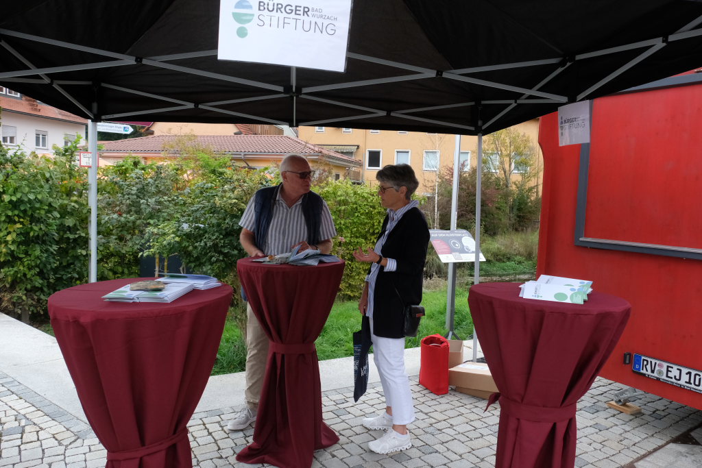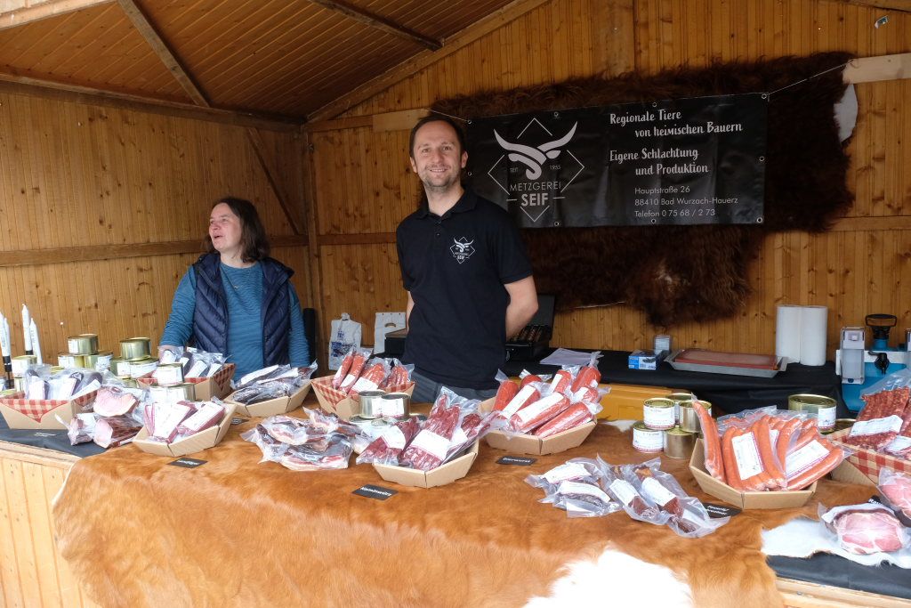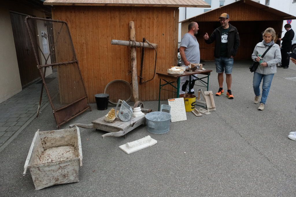 Nebenan in der Stadtbücherei konnten sich Kinder an einer märchenhaften Geschichte freuen, während die Erwachsenen nach Lust und Laune im Bücherflohmarkt stöbern konnten. Einige Schritte stadteinwärts konnte man, nachdem man die Autoausstellung eines Wurzacher Autohaus passiert hatte, beim Eingang zur Bürgerstraße beim „Uhrenflüsterer“ Westermayer, dessen Vorfahr vor 135 Jahren das Geschäft gegründet hatte, das ehemalige Uhr- und Schlagwerk der Grundschule bewundern. Das bildete gemeinsam mit dem gegenüberliegen Stand der Druckerei Rothenhäusler, die Einblicke in Historie des Druckens zeigte, den Eingang zum historischen Handwerkermarkt, bei dem ein Büchsenmacher sein Handwerk präsentierte, Schornsteinfeger kleine Glücksbringer verschenkten, ein Schreiner die Präzision seines Handwerkes aufzeigte. Am Stelzenmühlemühle-Stand konnte jeder mittels eines Hometrainer-Fahrrades sein Mehl auf historische Art selbst mahlen.