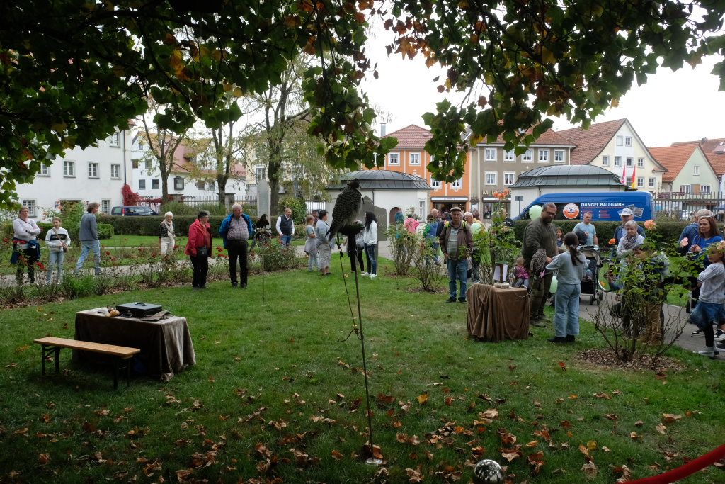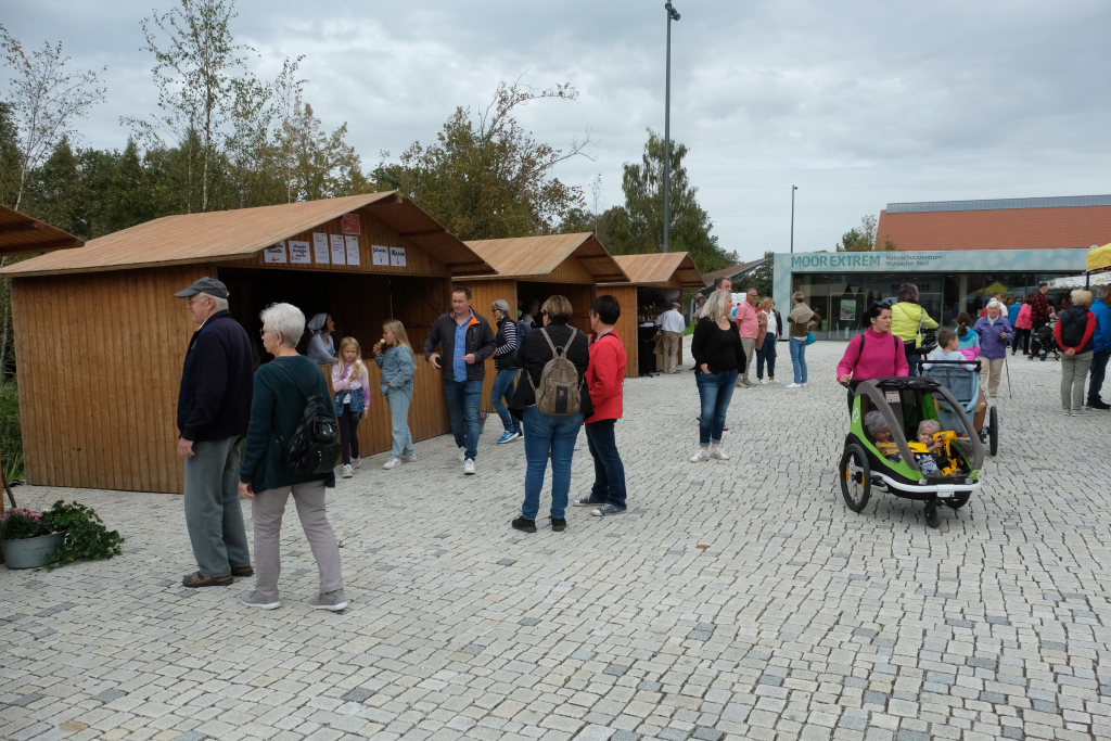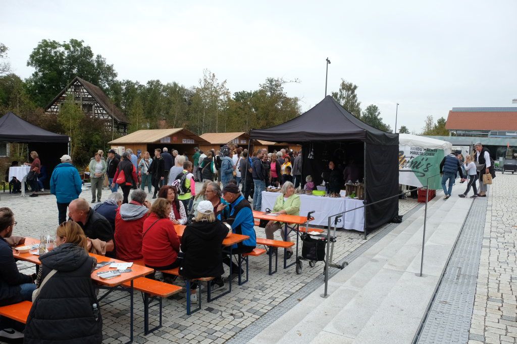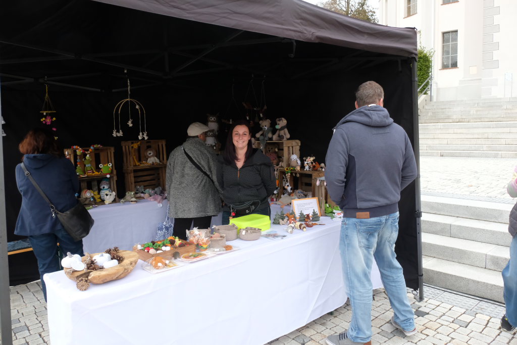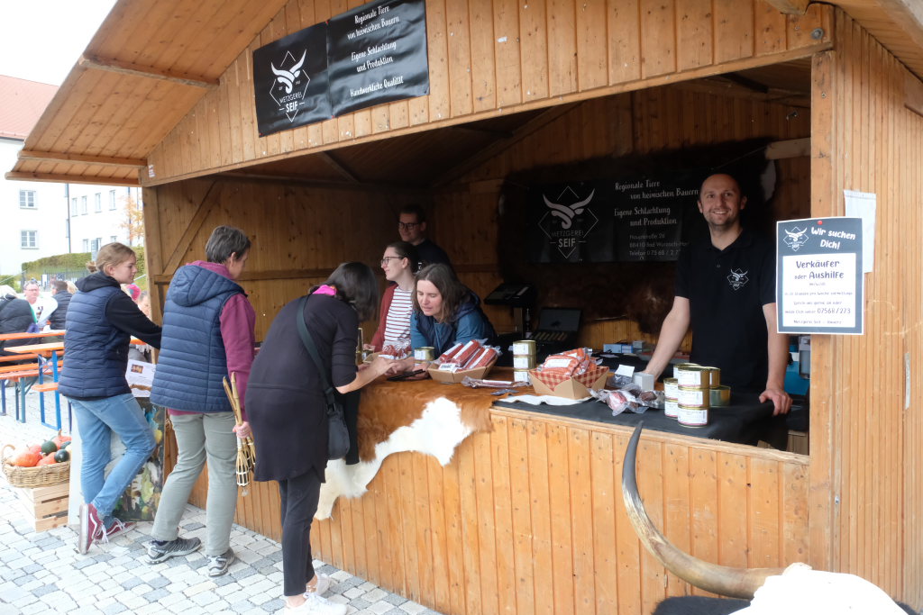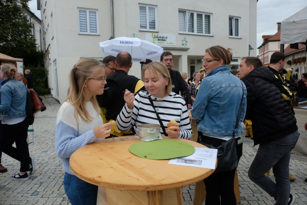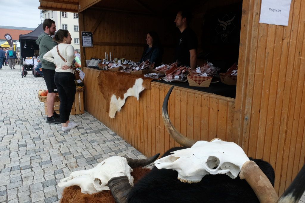 Es war viel geboten an diesem verkaufsoffenen Sonntag. Auf dem Klosterplatz empfingen Stände eines Bauernmarktes die Besucher. Zum großen Teil waren die Händler dort, die unter anderem Spezialitäten wie Allgäuer Kässpätzle, schwäbische Dinnete,oder aus einer Original-NVA-Gulaschkanone das namensgebenden deftige Gericht sowie Brot-, Wurst- und Fleischwaren feilboten, dem Anlass entsprechen in historische Gewänder gehüllt. Auch ein Schreiner bot in historischer Tracht seine handgefertigten Waren an, während am anderen Ende des Platzes der Münzpräger mit seinem drei Meter hohen Fallhammer die Besucher ein ums andere Mal zusammenzucken ließ.