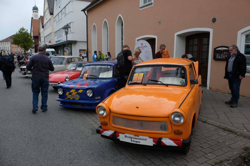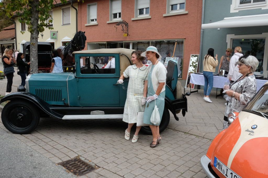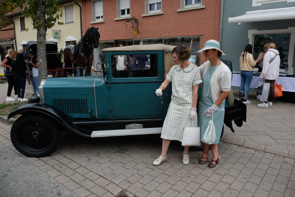 Interessante Oldtimer-Autos vom zu seiner Zeit sehr beliebten Renault R4 über einen Renn-Simca bis zu einem knall-orangenen Trabbi, der bei einer Straßenmeisterei im Torgau eingesetzt war, erwarteten den Besucher beim Spital. Richtig historische Oldtimer warteten dann in der Herrenstraße, wo Karl Ehrmann einige seiner ältesten automobilen Pretiosen präsentierte. Passend zum 1926er-Laubfrosch posierten die Damen des Näherinnen-Club in ihren selbstgenähten Kleidern im Stile der 1920er-Jahre Mode.