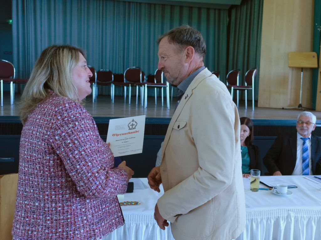 Nach einem Gebet von Pfarrer Stefan Maier stieg der Wallfahrtsausschuss in die Tagesordnung ein, nämlich mit den Ehrungen für langjährige Blutreiter und Musiker. Für die Musiker gab es eine Neuerung: Diese bekommen nun ebenfalls ab einer gewissen Jahreszahl eine Medaille und eine Anstecknadel statt wie bisher eine Urkunde.