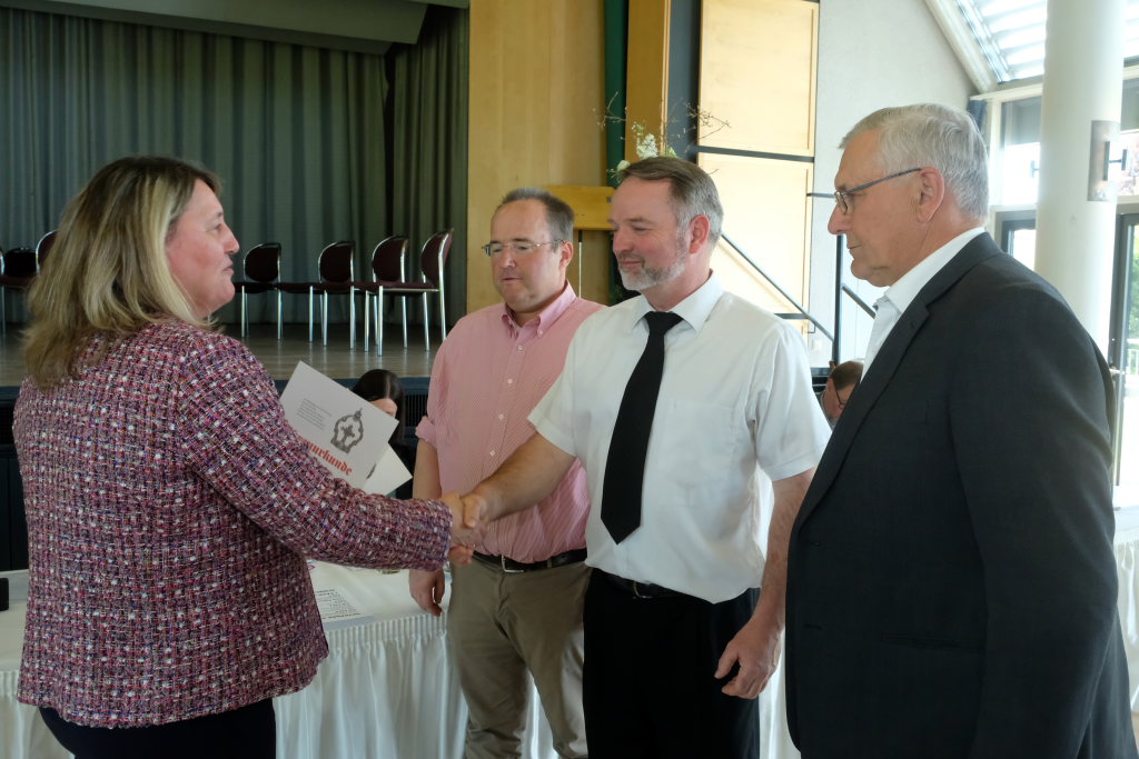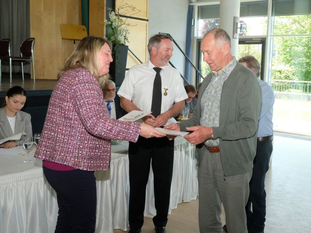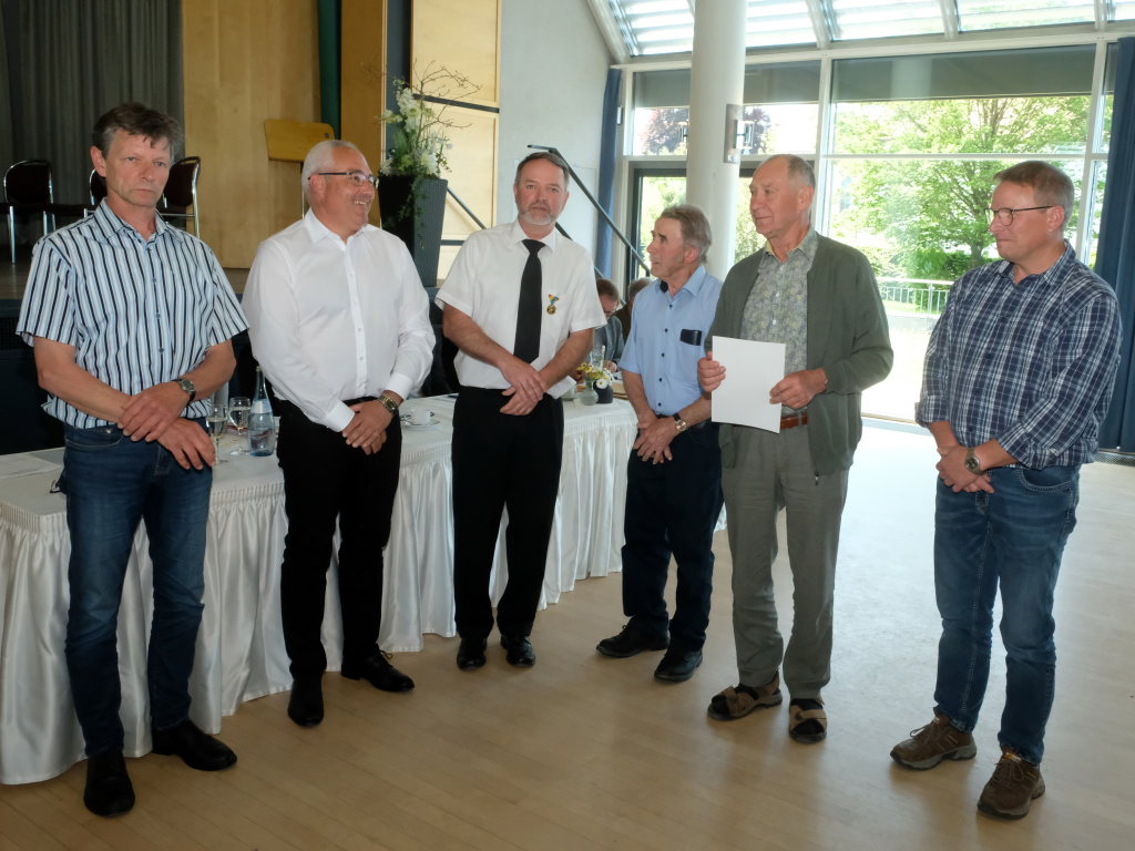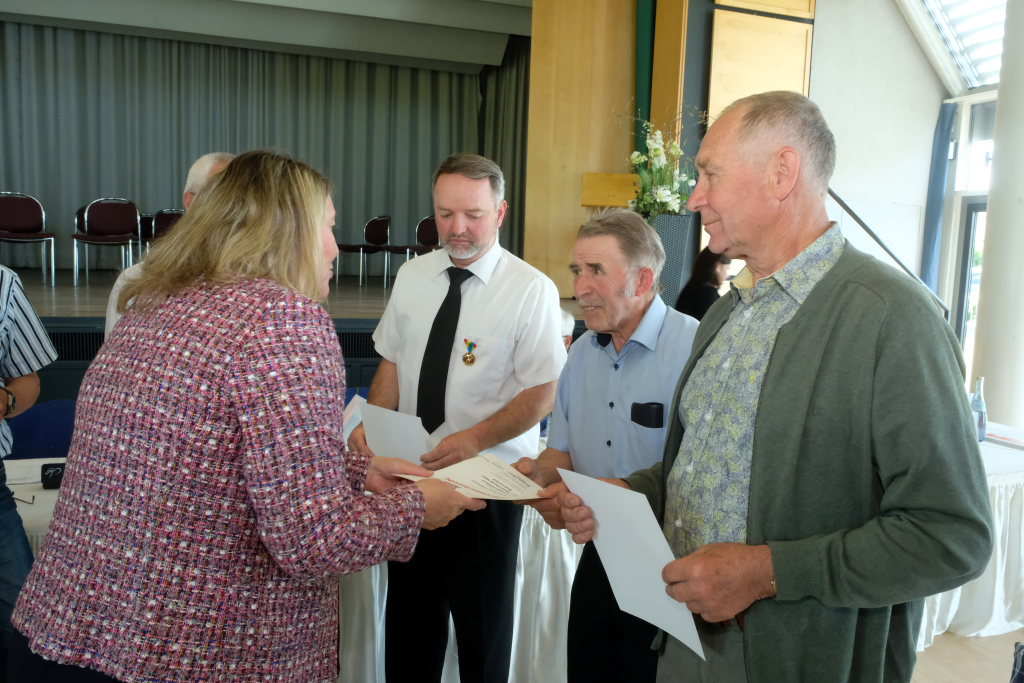 Ebenfalls mit Urkunde und einem Weingeschenk geehrt wurden die ausscheidenden Gruppenführer: Werner Köberle (Aulendorf), Roland Frank (Baienfurt), Josef Liebrrich (Molpertshaus) und Engelbert Gletter (Ratzenried).