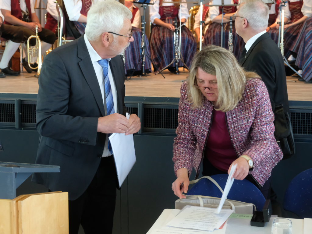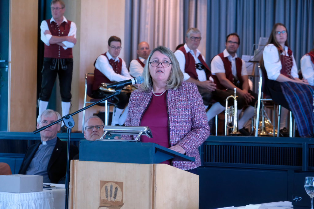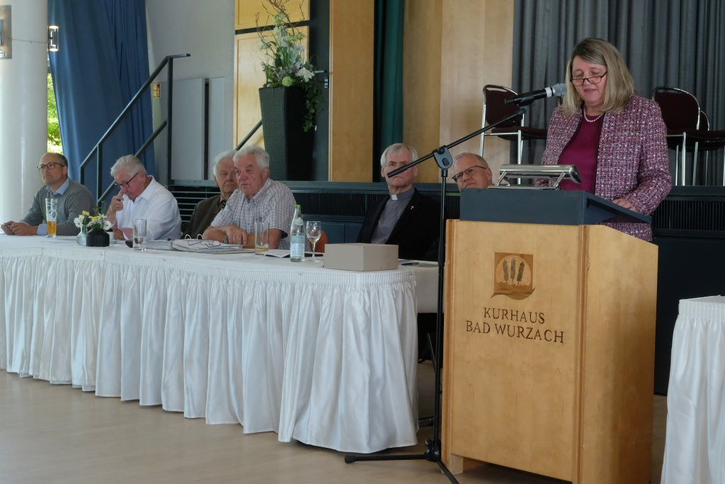 Bürgermeisterin Alexandra Scherer, die qua Amtes die Vorsitzende des Wallfahrtsausschusses ist, eröffnete ihren Bericht mit der Bekanntgabe der diesjährigen Hauptakteure für Reitersegnung, Pontifikalamt und Bergpredigt sowie des politischen Ehrengastes. Die Reitersegnung wird Abt Vinzenz Wohlwend OCist von der Abtei Wettingen-Mehrerau bei Bregenz vornehmen und später dann mit den Wallfahrern das Pontifikalamt feiern. Die Bergpredigt wird in diesem Jahr von Pater Hubertus Freyberg, Regina Pacis, Leutkirch gehalten werden. Politischer Ehrengast wird der CDU-Landesvorsitzende Manuel Hagel sein.