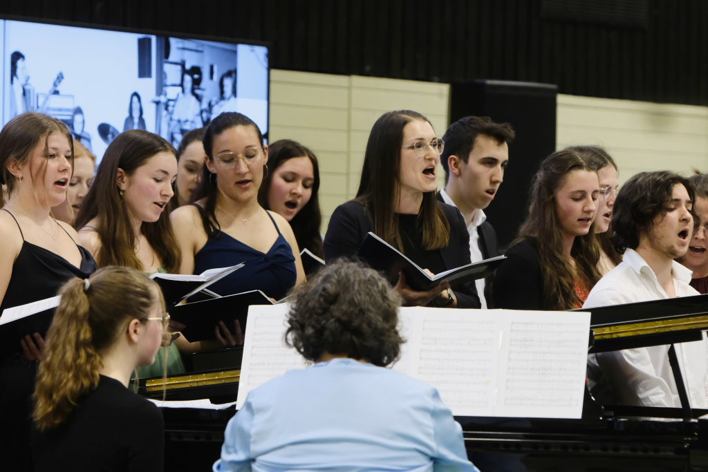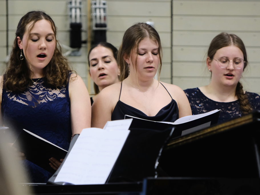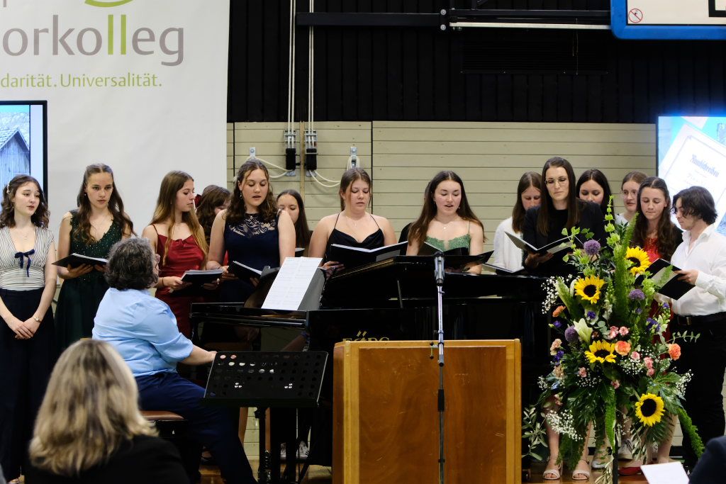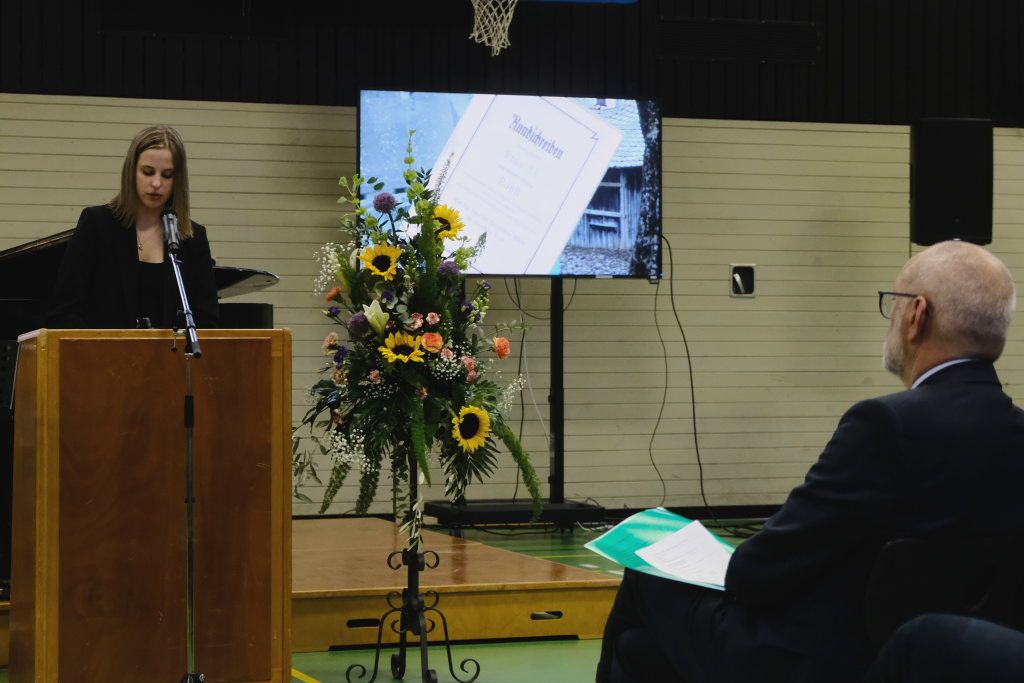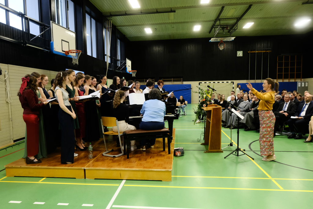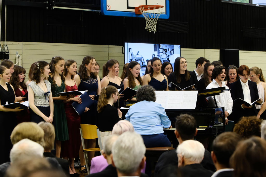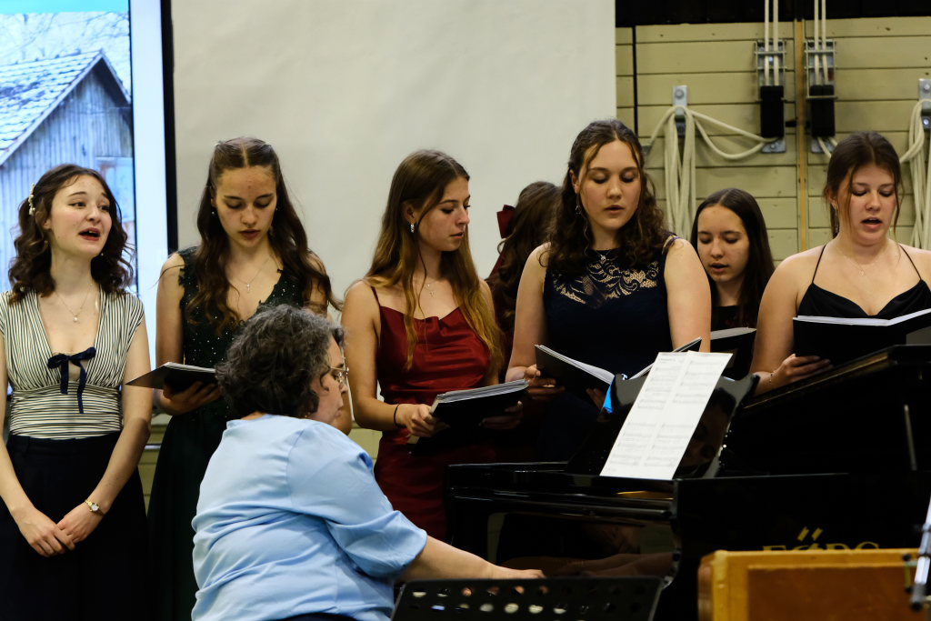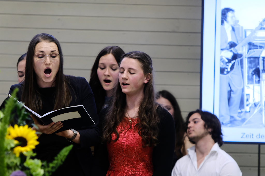 Der geschichtliche Exkurs wurde immer von hervorragenden musikalischen Darbietungen, etwa durch ein Klaviersolo von Hanna Gräber, und vor allem von gelungenen Gesangseinlagen des Vokalensembles „Re-United“ aufgelockert. Zum Abschluss, nach der Danksagung von Klaus Amann an alle, die in irgendeiner Form zum Gelingen der Feier beigetragen hatten und der Einladung zum gemeinsamen Plausch beim Stehempfang, durfte „Re-United“ die gelungene Jubiläumsfeier beschließen. Mit den Adele-Titeln „Skyfall“ und „When we were young“ wollten die Sänger/innen sich verabschieden, durften jedoch nicht ohne Zugabe ihr musikalisches Tagwerk beenden.