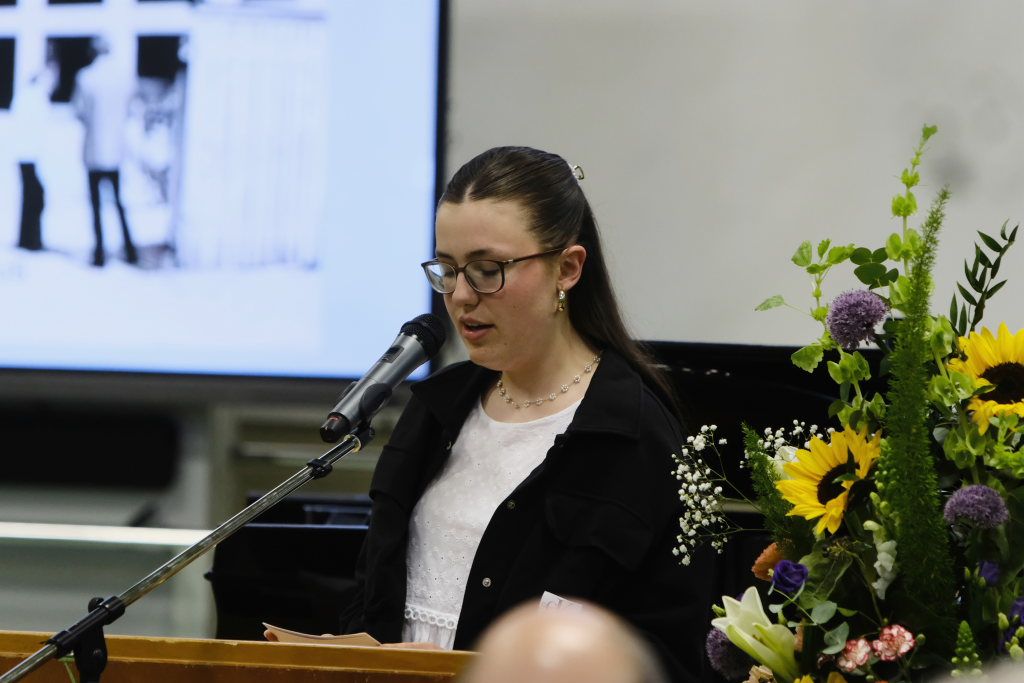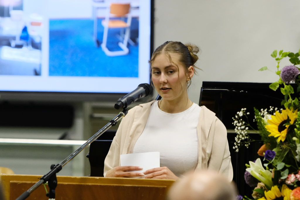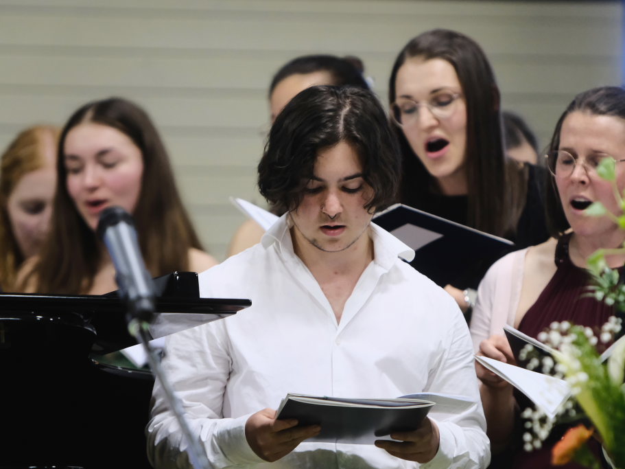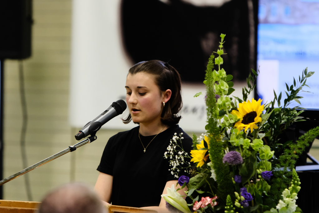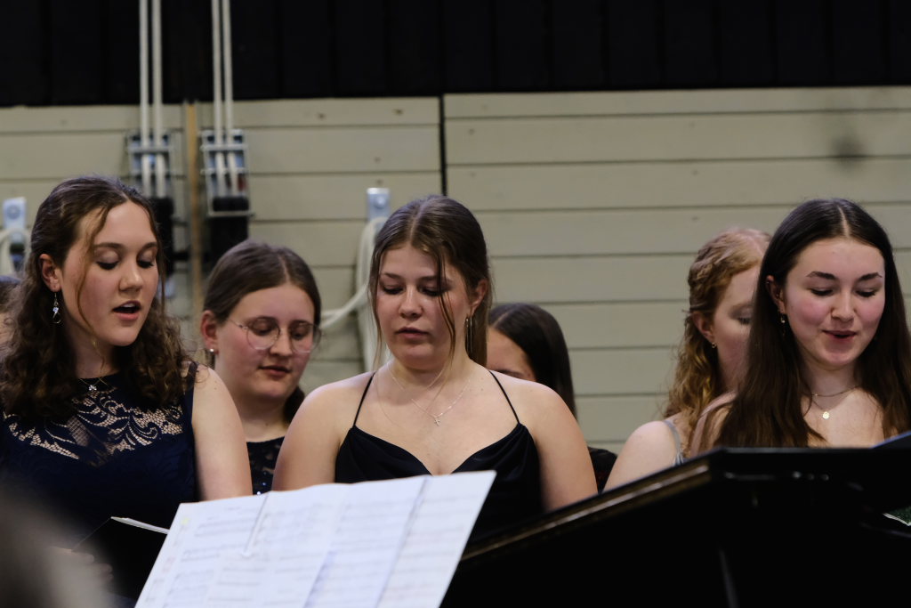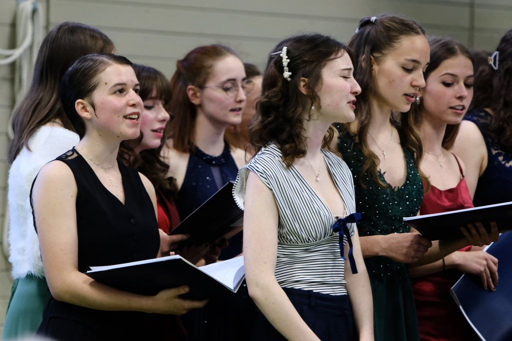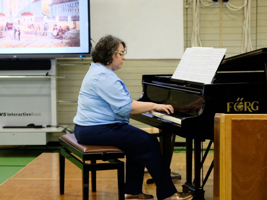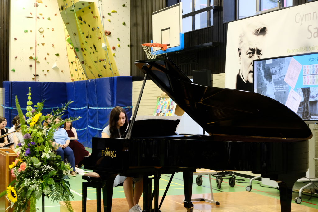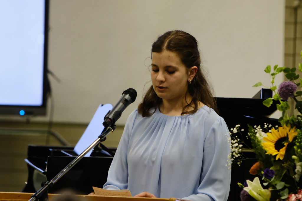 Der geschichtliche Exkurs wurde immer von hervorragenden musikalischen Darbietungen, etwa durch ein Klaviersolo von Hanna Gräber, und vor allem von gelungenen Gesangseinlagen des Vokalensembles „Re-United“ aufgelockert. Zum Abschluss, nach der Danksagung von Klaus Amann an alle, die in irgendeiner Form zum Gelingen der Feier beigetragen hatten und der Einladung zum gemeinsamen Plausch beim Stehempfang, durfte „Re-United“ die gelungene Jubiläumsfeier beschließen. Mit den Adele-Titeln „Skyfall“ und „When we were young“ wollten die Sänger/innen sich verabschieden, durften jedoch nicht ohne Zugabe ihr musikalisches Tagwerk beenden.