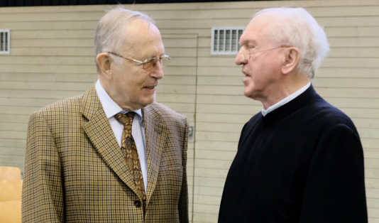 Altbürgermeister Helmuth Morczinietz im Gespräch mit Pater Leonhard Berchtold SDS.