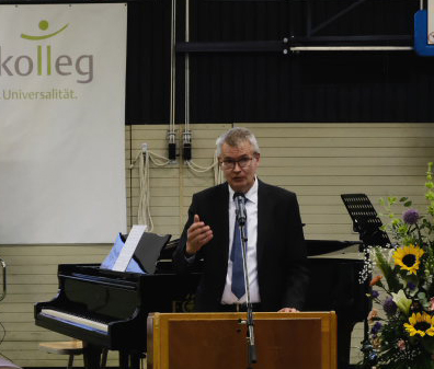 Provinzial Pater Dr. Friedrich Emde (Bild) ging in seinem Grußwort auf die bewegte Geschichte des Salvatorkollegs ein und wie diese schließlich zu der gemeinsamen Trägerschaft der Salvatorianer und der Franziskanerinnen von Sießen führte. In den 1990er-Jahren führte der Nachwuchsmangel der Salvatorianer zur Schließung des Internats und zur – in Bad Wurzach anfangs nicht unumstrittenen – Entscheidung der gemeinsamen Trägerschaft.