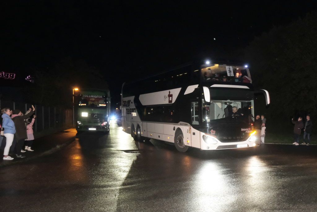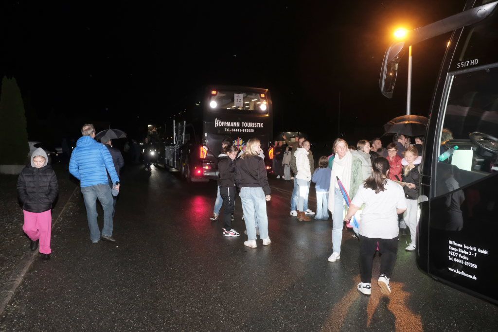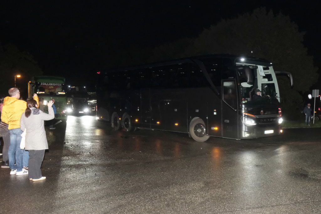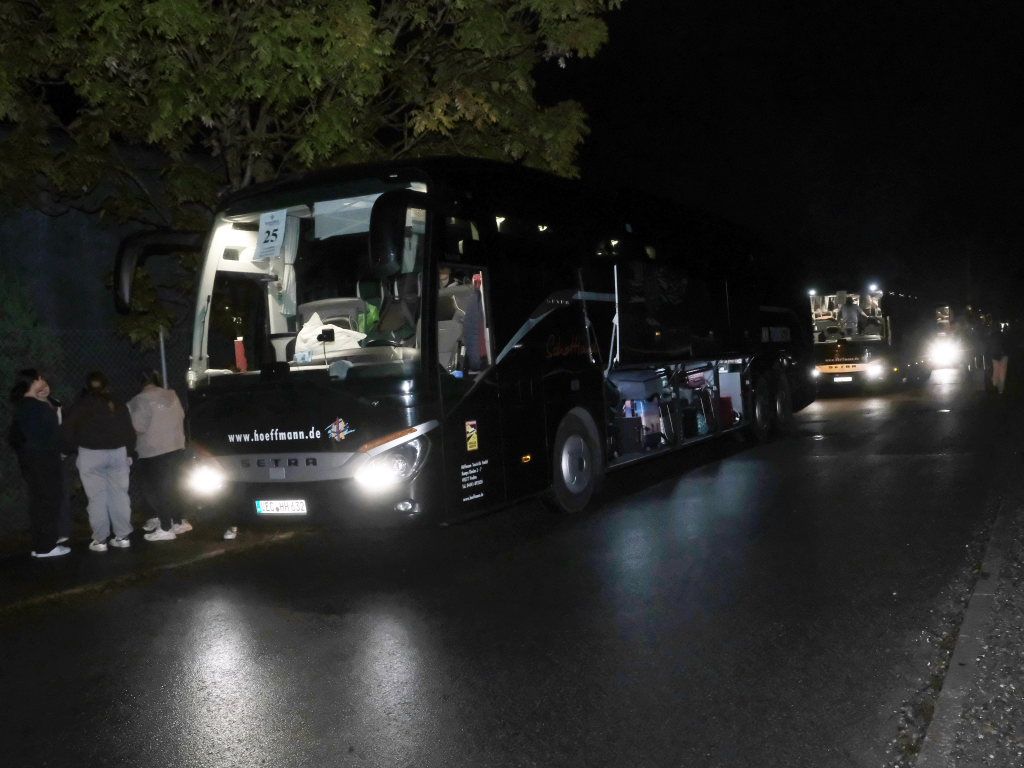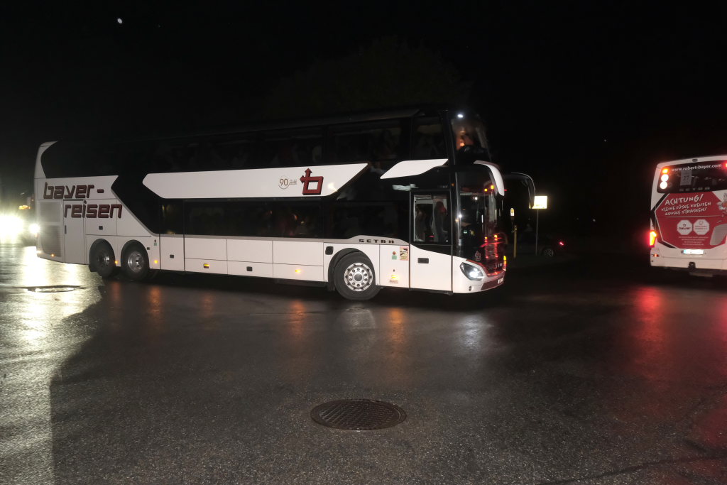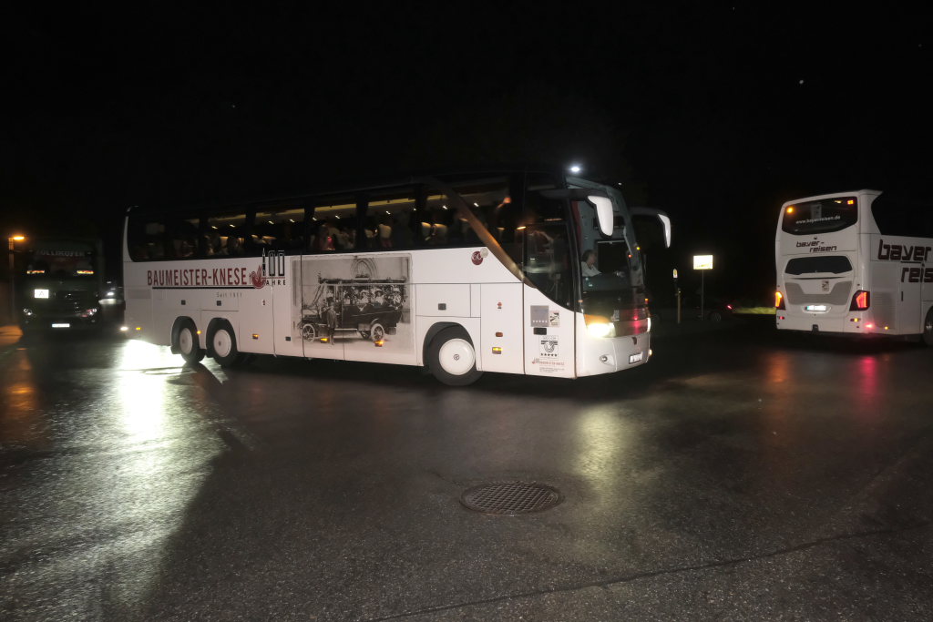 Über 535 Schüler des Salvatorkollegs Bad Wurzach brachen an diesem Freitagabend (04.10.) zu einer Busfahrt nach Rom auf. Insgesamt 611 Reisende saßen in den 13 Bussen, die sich um 20.00 Uhr vom Gewerbepark West aus gen Rom in Bewegung setzten. Denn nur dort war ausreichend Platz vorhanden, um die Busse in Ruhe mit dem Gepäck der Reisenden zu beladen. Was sich allerdings trotzdem als nicht ganz unproblematisch erwies: Ungeachtet der Aufforderung der Schulleitung, Fahrgemeinschaften zu bilden und die Parkmöglichkeiten der großen Firmen zu nutzen, war die Zufahrt zum Gewerbegebiet zum Zeitpunkt des angegebenen Treffpunktes ab der Abzweigung Richtung Ziegelbach an diesem Abend von ankommenden Pkw´s kurzzeitig blockiert. Dennoch schaffte es die Reiseleitung – ein Tourismusunternehmen aus Vechta, das auch für das Reiseprogramm verantwortlich zeichnet – dass die Busse pünktlich auf die Reise nach Rom gehen konnten.
