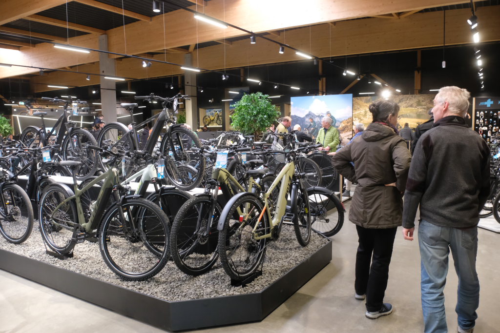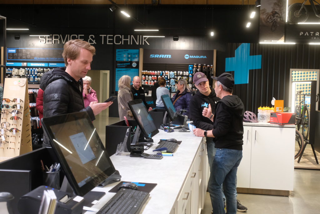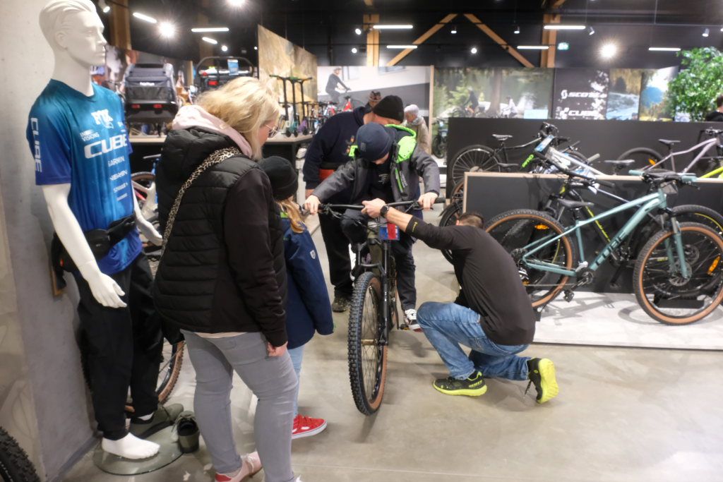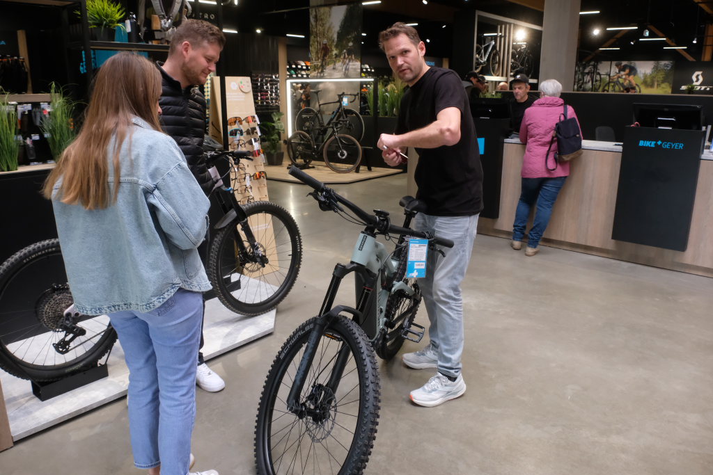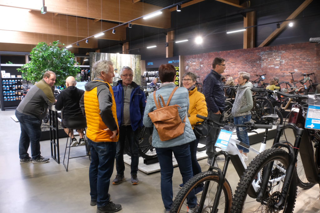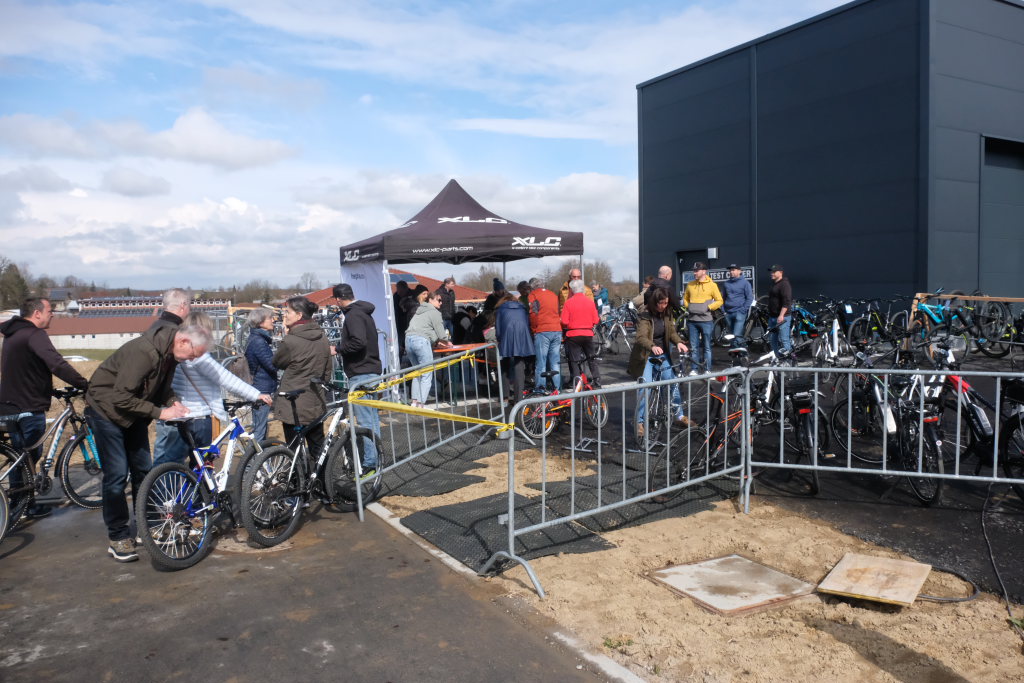 Bereits am Morgen pilgerten viele Besucher zu einem der Brennpunkte, zur offiziellen Eröffnungsmesse bei Bike+ Geyer in der Ziegelwiese. Auch zum Gebrauchtrad-Flohmarkt des Skiclubs. Mit dabei war auch Optik-Westermayer, das einen Sportbrillentest durchführte, und im extra aufgestellten Festzelt spielte die Musikkapelle Eggmannsried beim Frühschoppen auf.