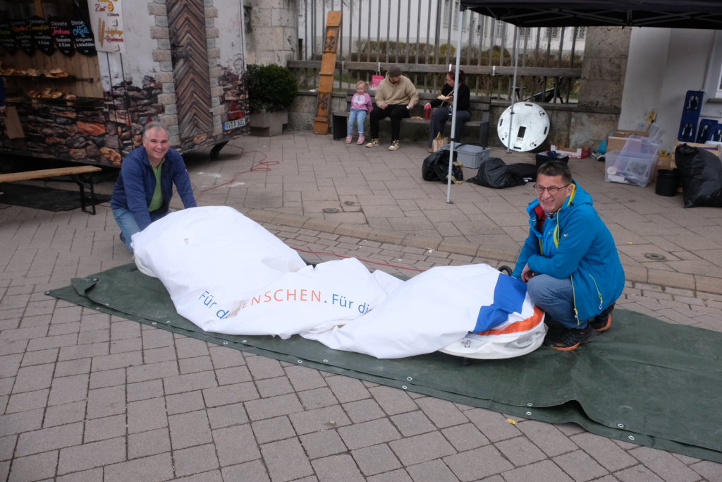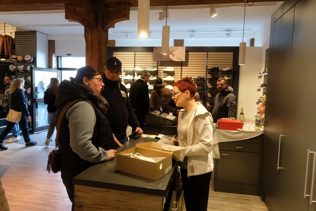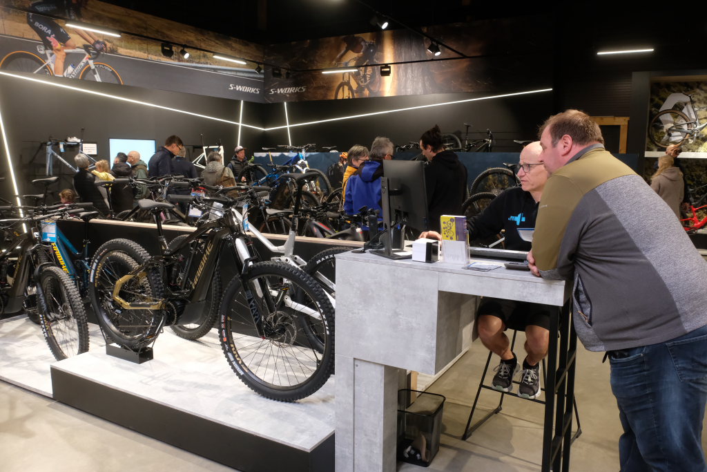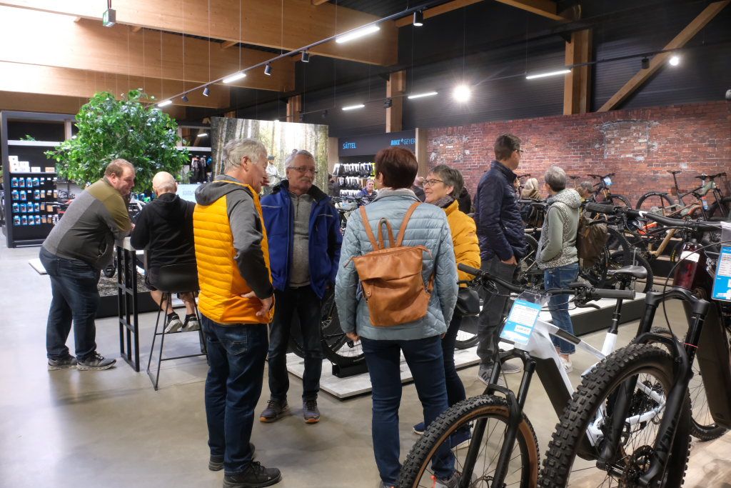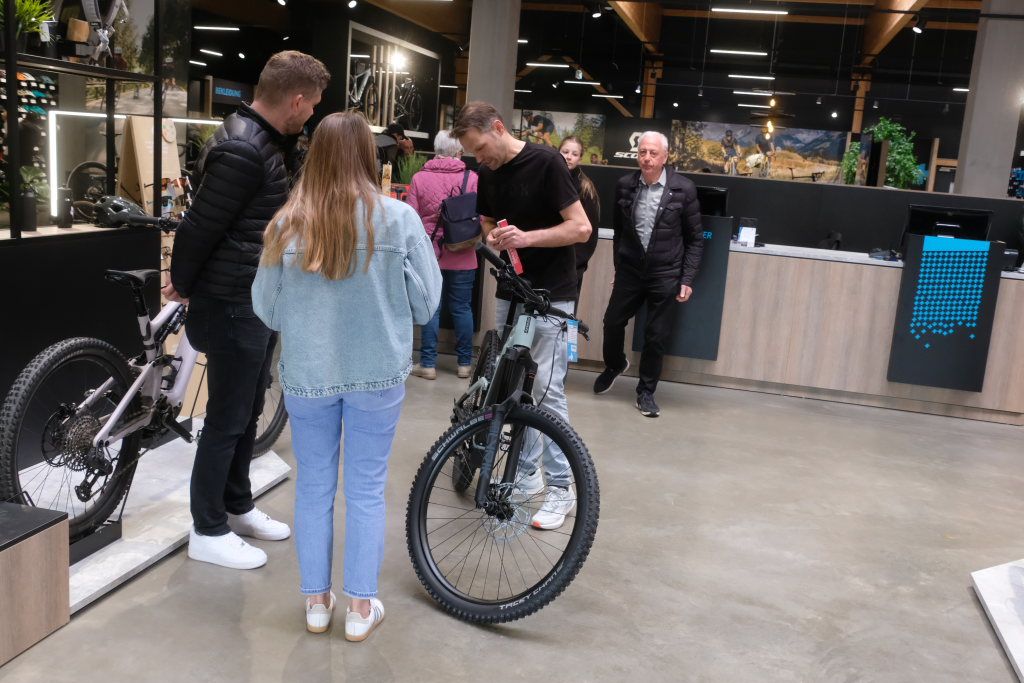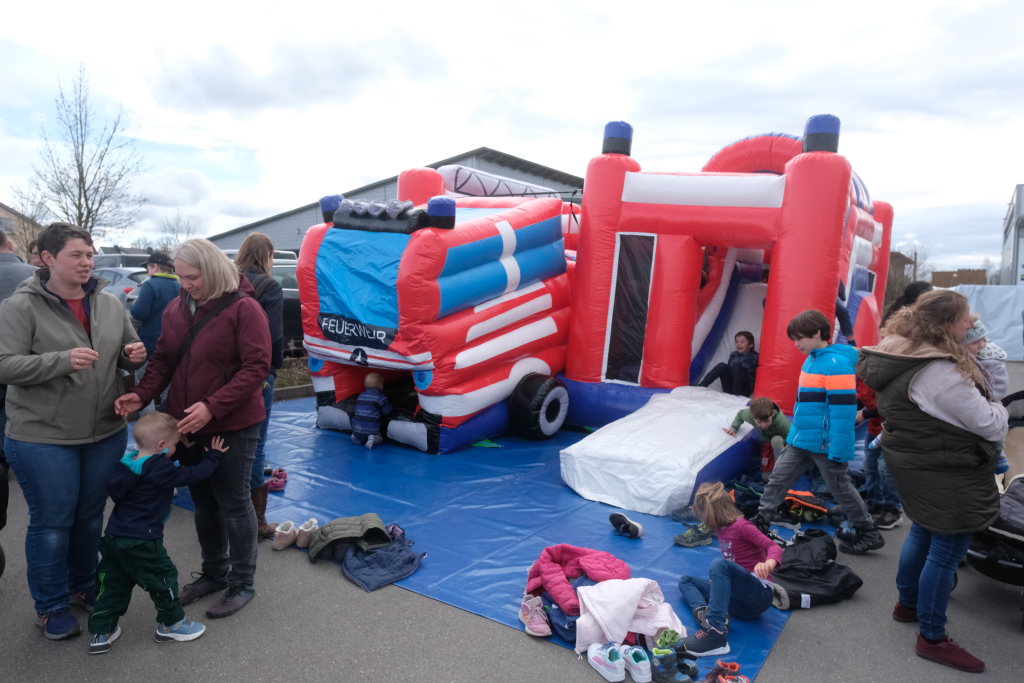 Bereits am Morgen pilgerten viele Besucher zu einem der Brennpunkte, zur offiziellen Eröffnungsmesse bei Bike+ Geyer in der Ziegelwiese. Auch zum Gebrauchtrad-Flohmarkt des Skiclubs. Mit dabei war auch Optik-Westermayer, das einen Sportbrillentest durchführte, und im extra aufgestellten Festzelt spielte die Musikkapelle Eggmannsried beim Frühschoppen auf.