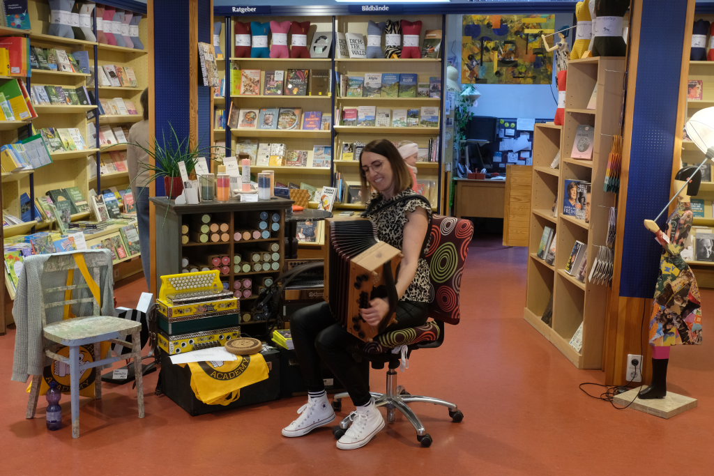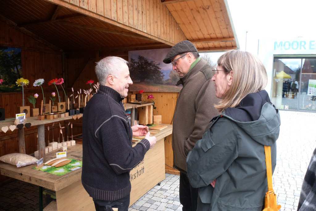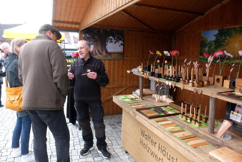 Der Programmbeitrag der Bad Wurzach-Info (BWI), Stadtbücherei und Moor-Extrem konnte sich ebenfalls sehen lassen: Im Maria Rosengarten wartete die Stadtbücherei mit einem Bücherflohmarkt auf und die Ausstellung Moor Extrem war bei freiem Eintritt zu besichtigen. Auf dem Klosterplatz sah man die bewährten Stände etwa der Metzgerei Seif, von Josef Hart (heimischer Honig) und Oli´s Käseallerley; auch Non-Food-Stände wie die Holzwerkstatt von Walter Häusle, Elke Sugg mit ihren e.unikaten, Gehäkeltem und Gestricktem, die Seifenherstellung von Susanne Wagner sowie Walburga Münsch, die verschiedene Keramikprodukte zum Verkauf anbot. Auch das feelMoor-Gesundresort präsentierte sich ebenso wie die Schäfereigenossenschaft Finkhof aus Arnach.