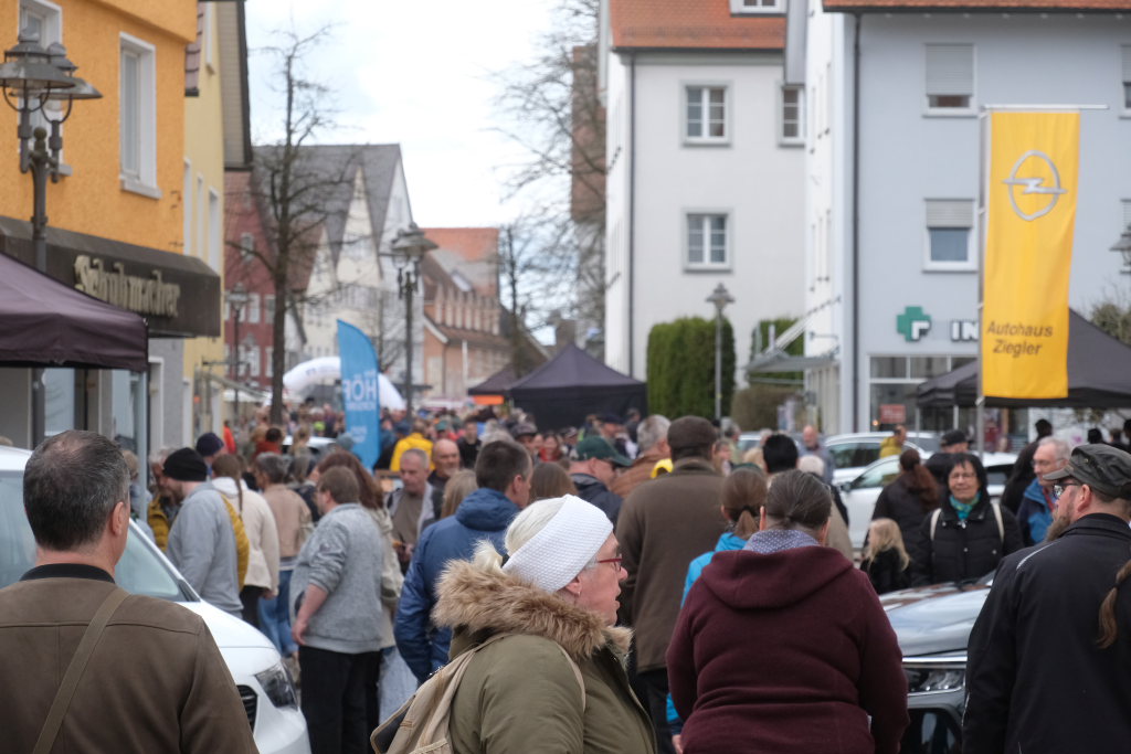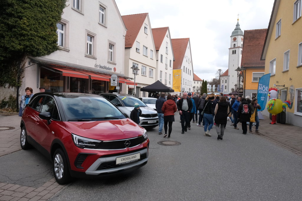 Bad Wurzach – Die Händler der Stadt hatten sich für den Fit-Fun-Shopping-Tag wieder Einiges einfallen lassen: Neben der schon aus dem Vorjahr bekannten Hühner-Schaufenster-Rallye, bei der es auch in diesem Jahr wieder zahlreiche Preise zu gewinnen gab, lockte etwa beim Mode- und Trendhaus Binder ein Schnäppchenmarkt, die Autohäuser zeigten ihre aktuellen Modelle auf der beliebten Automeile, Optik-Blickfang warb mit einem Sonder-Brillenverkauf und vieles mehr gab es zu bestaunen und zu erwerben. Und weil das Wetter entgegen so mancher Vorhersage sehr gut mitspielte, gab es auch in diesem Jahr wieder einen großen Besucheransturm.