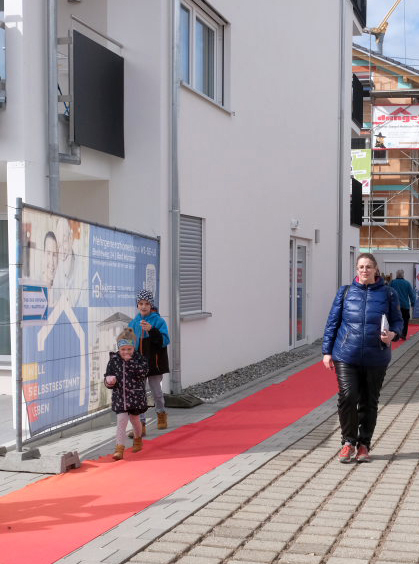 Auf dem Wi-Se-Le-Areal im Breiteweg konnten die Besucher den Baufortschritt im Rohbau des zweiten der drei Mehrgenerationenhäuser besichtigen. Für Besucher und Interessenten hatten die Bauherren des Bauinformationszentrums des Baugeschäfts H&M den berühmten Roten Teppich ausgerollt.