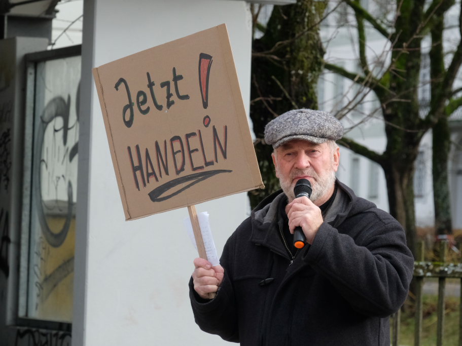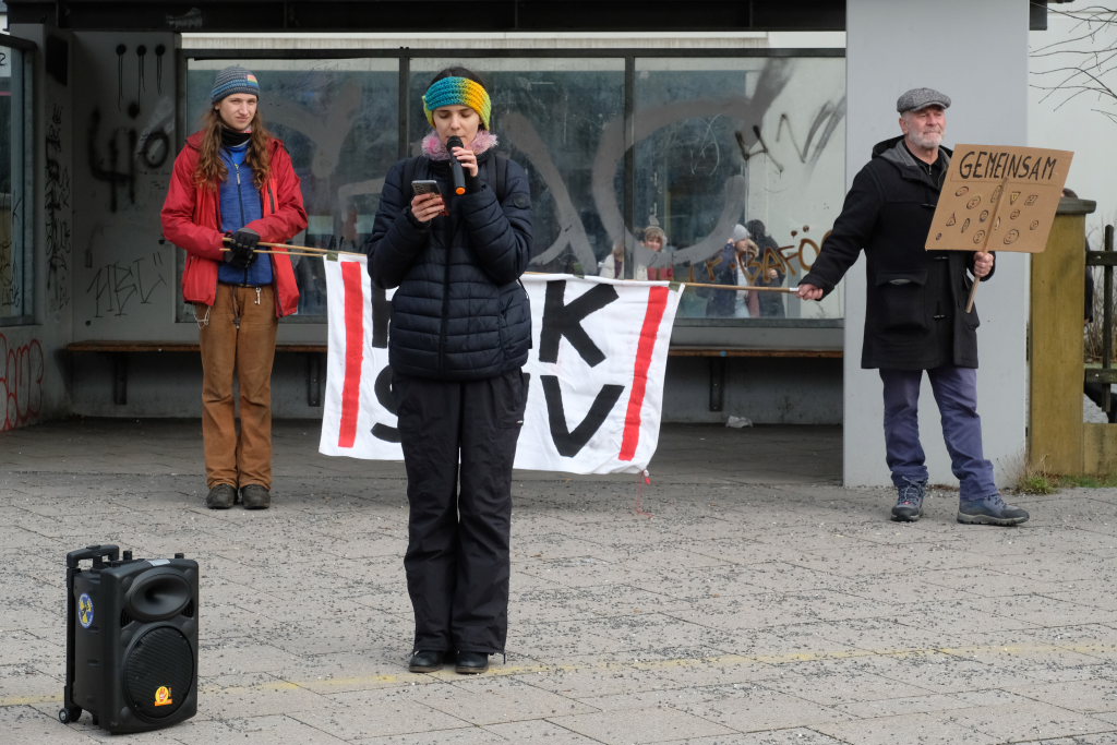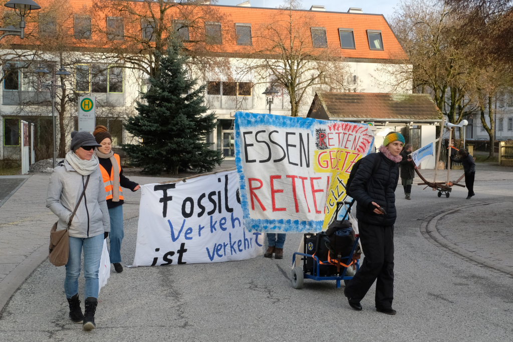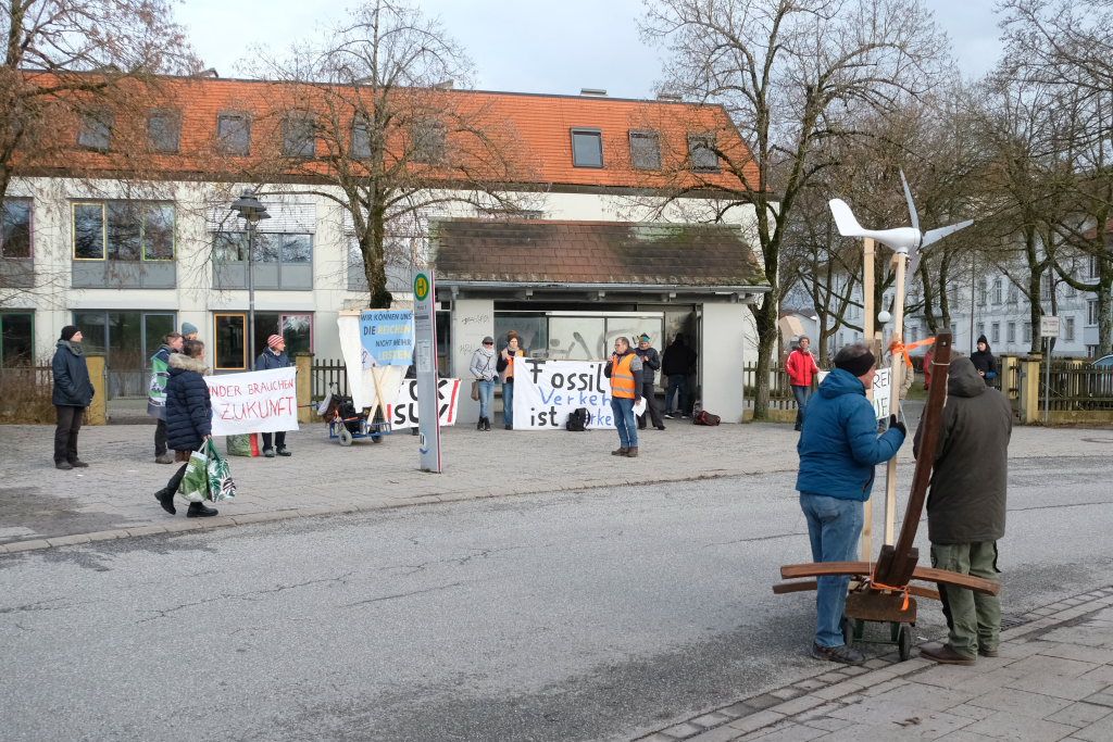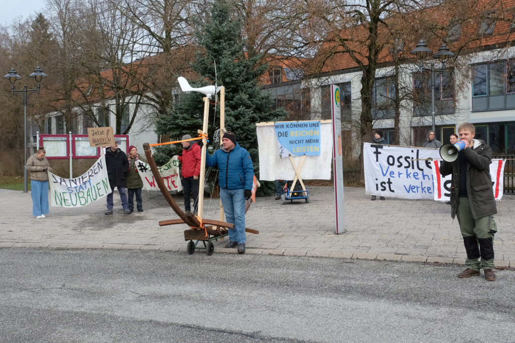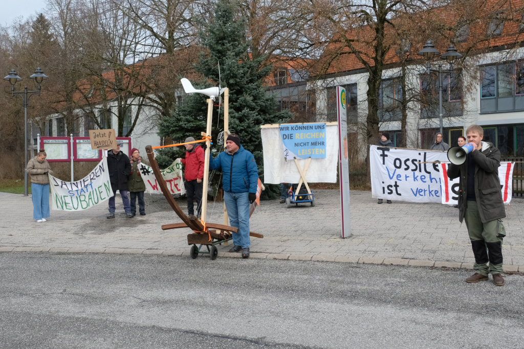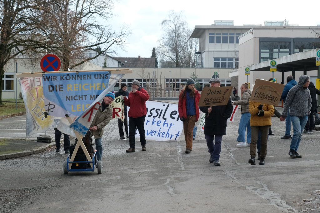 Noch einmal Lukas Häfele: Er sprach nach der Rückkehr vom Klosterplatz bei der Zwischenstation am Busbahnhof noch einmal den riesigen ökologischen Fußabdruck der Reichen an, die mal kurz mit dem Privatjet für einen Kaffee nach Sylt flögen. Und er prangerte auch das Verhalten der Behörden an, nachdem bei Unterzeil / Aichstetten ursprünglich Windkraftanlagen geplant waren, dann aber wieder – eben wegen des Flugplatzes – von der Agenda genommen wurden (im neuen Regionalplan-Entwurf wieder enthalten / Anm. d. DBSZ.-Red.).