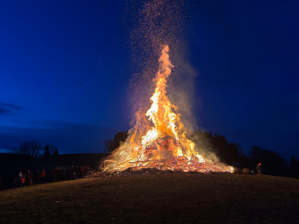 Arnach – Den Funken in Arnach-Schlesis, der traditionell am Funkensonntagabend auf einem Hügel beim Anwesen Vetter abgebrannt wird, gibt es seit mehr als 50 Jahren.