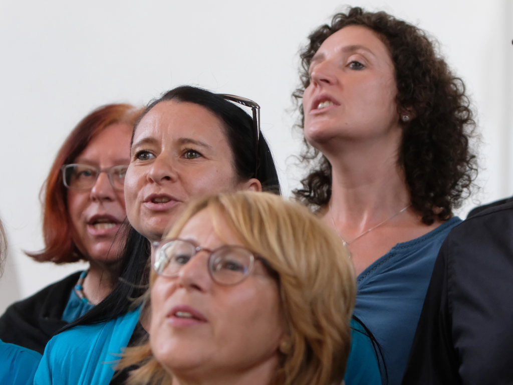 Mit dem mitreißenden „Long as I’ve got king Jesus“ der amerikanischen Gospelsängerin Vicky Winans – den Solopart sang dabei Andrea Baumgärtner – eröffneten die gut 30 Sängerinnen und Sänger des Gospelchors Aitrach unter dem Dirigat von Tanja Scheuch nach einem instrumentalen Intro der Band mit Thomas Eisele am Piano, Thomas Hertel am Bass, Martin Speckle an den Percussion-Instrumenten sowie Claus Dieng an der Gitarre ihr diesjähriges Sommerabendkonzert.
