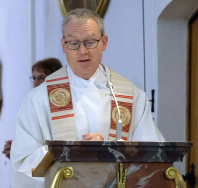 Pfarrer Patrick Meschenmoser (Bild), der am Rochus-Tag (16. August) bereits die erste Heilige Messe in der frisch renovierten Kapelle zelebriert hatte (mit Altarsegnung), eröffnete die konzertante Andacht mit einem Dankgebet. Die Soulsisters, die Zwillinge Ruth und Judith Angele aus Starkenhofen, sorgten mit Liedern wie „Näher mein Gott zu Dir“, „Ich bete an die Macht der Liebe“ und „Wo ich auch stehe“ für den feierlichen Charakter der Andacht, in deren Rahmen durch Margit Reischmann der verstorbenen Brugger der letzten 60 Jahre gedacht wurde.