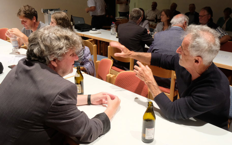 Gerhard Reischmann berichtete in seinem launigen Lichtbilder-Vortrag auch, wie es dazu kam, dass neben der ursprünglich alleinig geplanten Altarrestaurierung plötzlich eine komplette Innensanierung entstanden ist. Und wie etwa Helfer von sich aus auf ihn zugekommen sind: „Ka i Ui helfa?“ Und wie intensiv sich manche Helfer im Wortsinne in die Arbeit hineingekniet haben. Oder wie er einmal angesprochen worden sei, dass sich vor der Kapelle „Ein Bild für Götter“ dargestellt habe, als einige der „Arbeiter“ gerade mal auf einer Wagenpritsche Pause machten. Oder wie lustig der Einkauf des Materials für den Holzboden, mit dem die bisherigen „1B-Fliesen“ nun bedeckt sind, endete. „Eikehra ghört au zum Renoviera“, sagte er. Und dass so manche Helferinnen sie eher wie scheue Rehe vor seiner Chronisten-Kamera verhielten – er habe sie aber trotzdem erwischt.