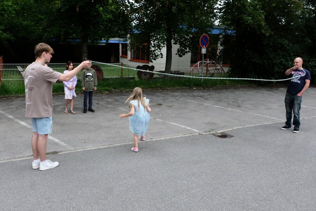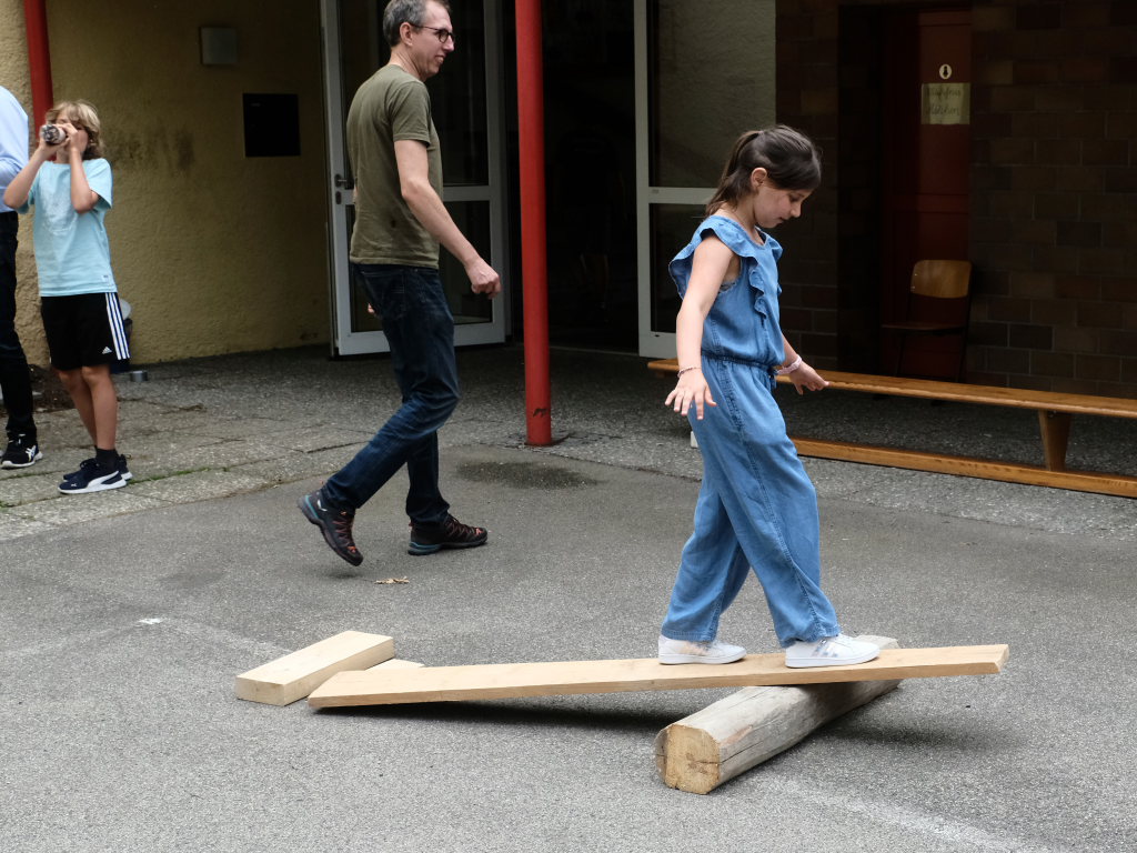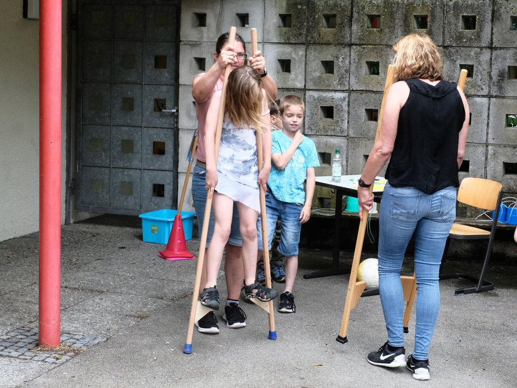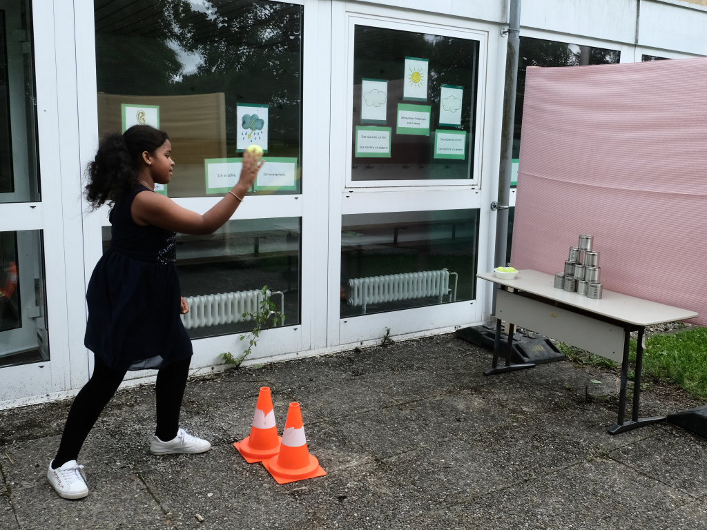 Sie schloss ihre Rede mit einem großen Dank an die Elternvertreter und den Förderverein, die gemeinsam seit mehr als eineinhalb Jahren das Fest vorbereitet hatten, dem Bauhof, der in den letzten Wochen zur Vorbereitung des Festes unglaubliches geleistet hatte, Eltern und ehemaligen Schülern sowie Mitglieder der SG Haidgau, die an den Spielestationen halfen.