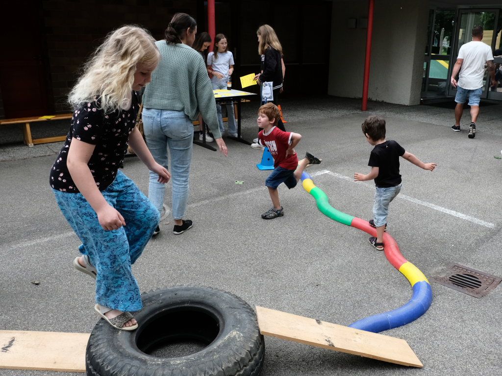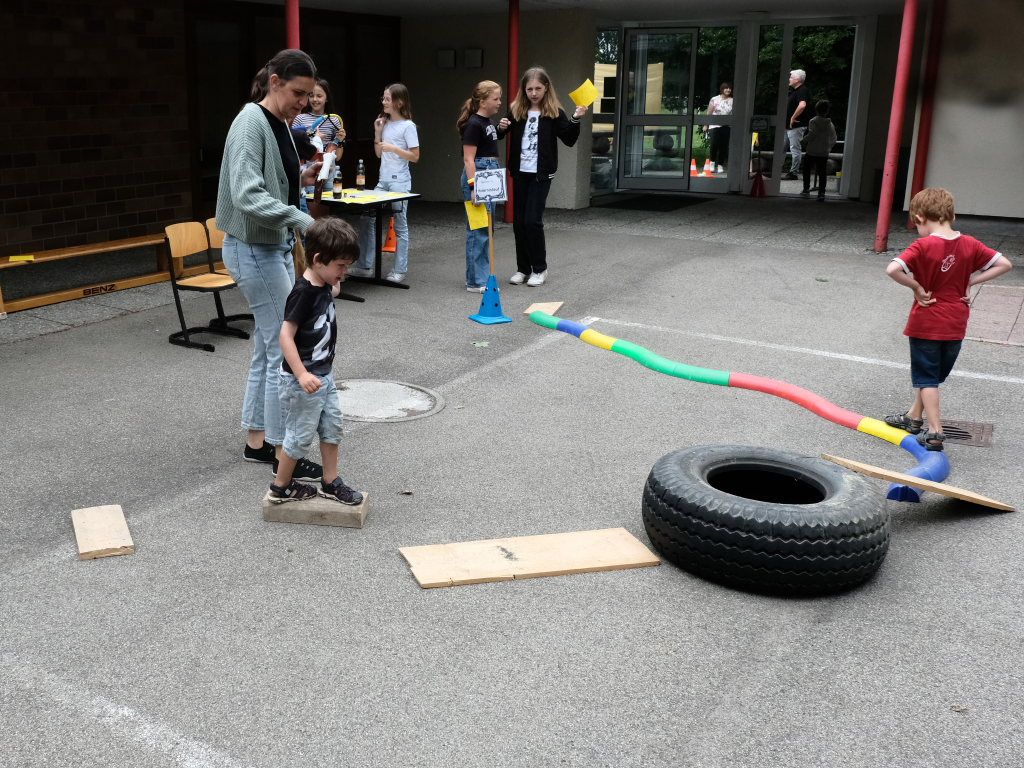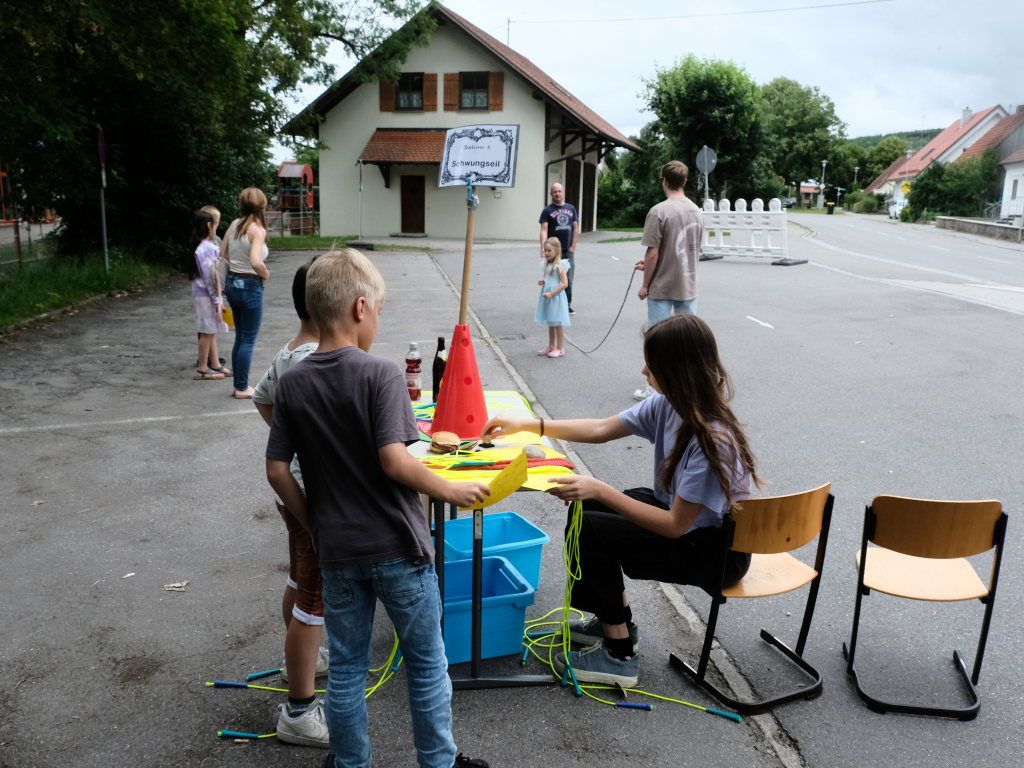 Danach durften die Kinder sich nach dem langen Stillsitzen auf die 12 Stationen der Spiel- und Sportstraße stürzen, während die Erwachsenen durch die Ausstellungen wandern oder gleich zum lukullischen Teil des Festes im Dorfstadel übergehen konnten. Dort war auch eine Tombola mit vielen gestifteten Preisen aufgabut.