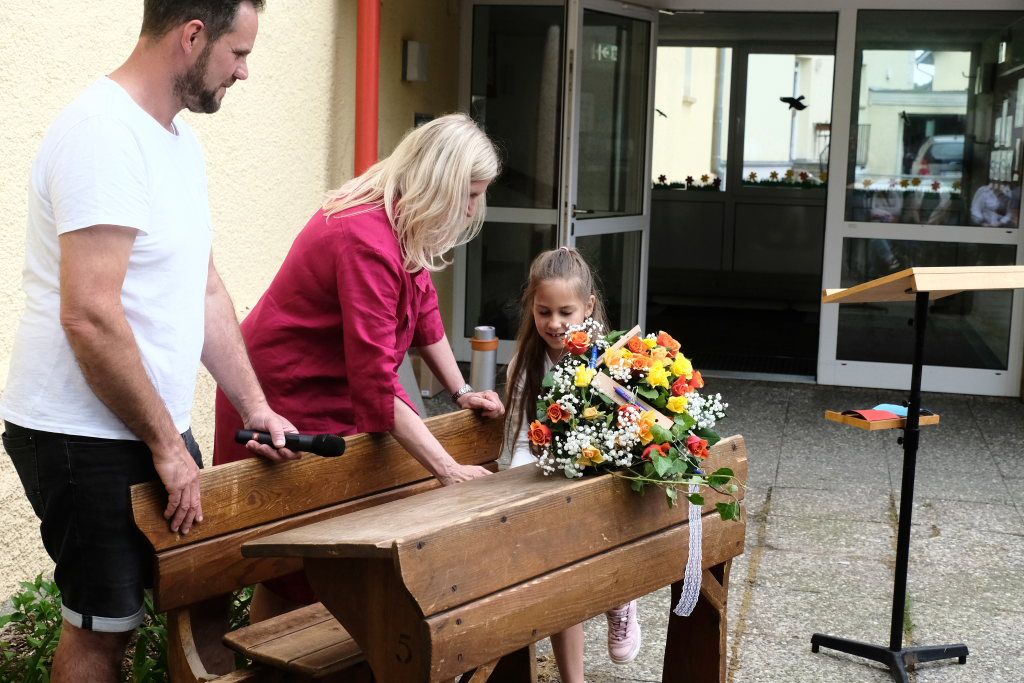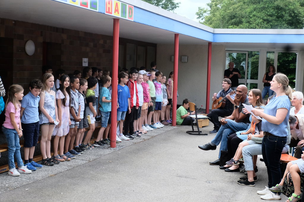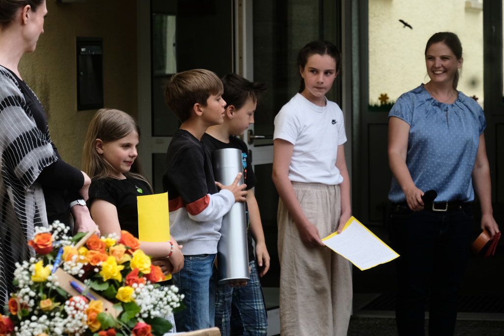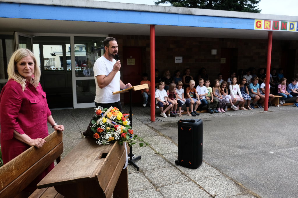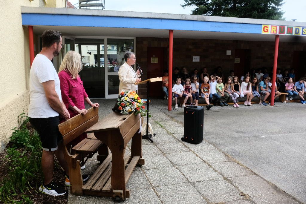 Für ihre Rede hatte Schudeja einen intensiven Blick auf die Geschichte der Schule geworfen, der sie selbst schon lange, bevor sie deren Leitung übernahm, sehr verbunden war, denn ihre beiden Geschwister waren selbst Schüler der Schule. „Die Grundschule Haid ist eine besondere Schule. Sie ist zweigeteilt, und dass es dennoch so gut läuft, ist nicht selbstverständlich.“ Erstklässler, die Bus fahren – oft sei das für die Eltern aufregender als für die Kinder selbst. Bei der Grundschule Haid sei das kein Problem. Die Kinder freuten sich sogar darauf – es sei wie ein kleines Abenteuer, das jeden Tag neu beginne.