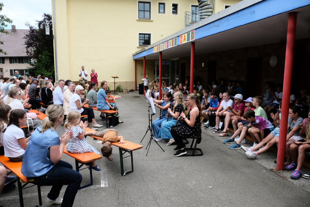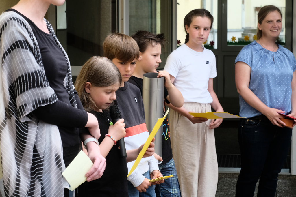 Schudeja freute sich, neben Bürgermeisterin Alexandra Scherer, Ortsvorsteher Alfons Reichle, André Radke, den geschäftsführenden Schulleitern aller Bad Wurzacher Schulen und der stellvertretenden Amtsleiterin des staatlichen Schulamtes in Markdorf, Bernadette Behr, auch viele ehemalige LehrerInnen und SchülerInnen der Grundschule Haid zu der Feier begrüßen zu können, die von Lehrern, Eltern, Elternbeirat und Förderverein auf die Beine gestellt worden war.