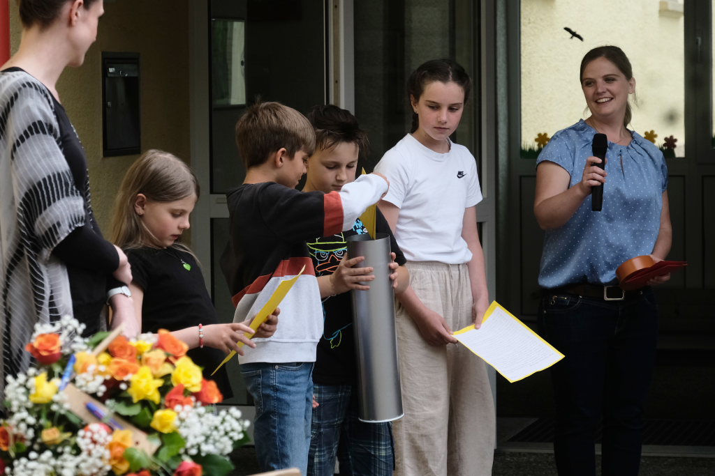 Mit Bernadette Behr vom Schulamt in Markdorf kam eine ehemalige Rektorin der Schule (2003 bis 2007) an ihre alte Wirkungsstätte. Sie zeigte sich begeistert von dem beeindruckenden Konzept, das an der Schule umgesetzt und von allen gelebt wird. Die Grundschule Haid sei heute eine starke Schule mit zwei Standorten. „Die Begeisterung macht deutlich, dass Lernen am Besten gelingt , wenn alle an einem Strang ziehen.“