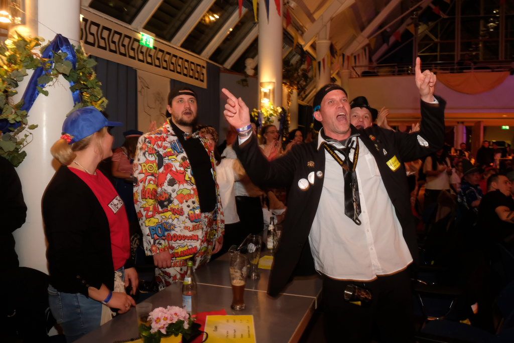 Dann wurde es richtig laut: Die Allgäuer Long Dongs enterten die Bühne bzw. die Tanzfläche. Neben Guggenmusik-Klassiker spielten sie auch zwei Lieder aus dem riesigen Repertoire der Beatles, perfekt geeignet zum Mitsingen. Angesichts des Schlagwerks in unmittelbarer Nähe der vorderen Tische wünschte man sich, dass der Kursaal gerne 15 Meter länger wäre.