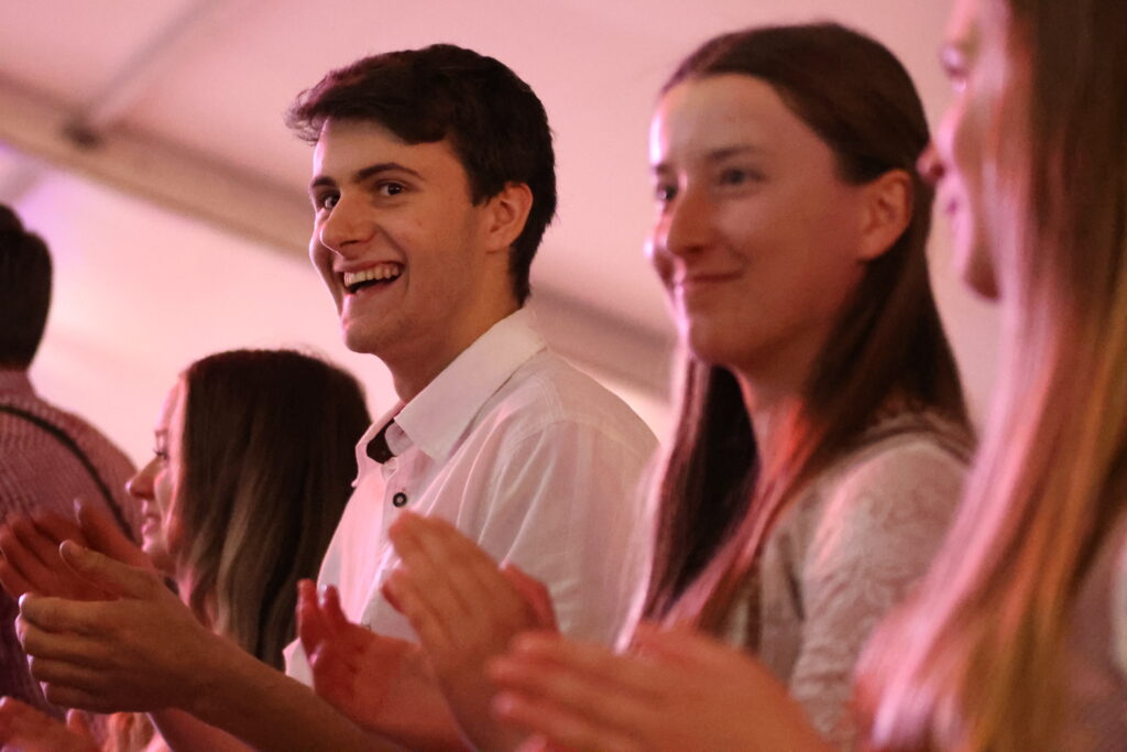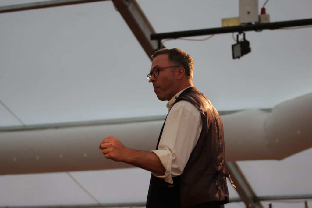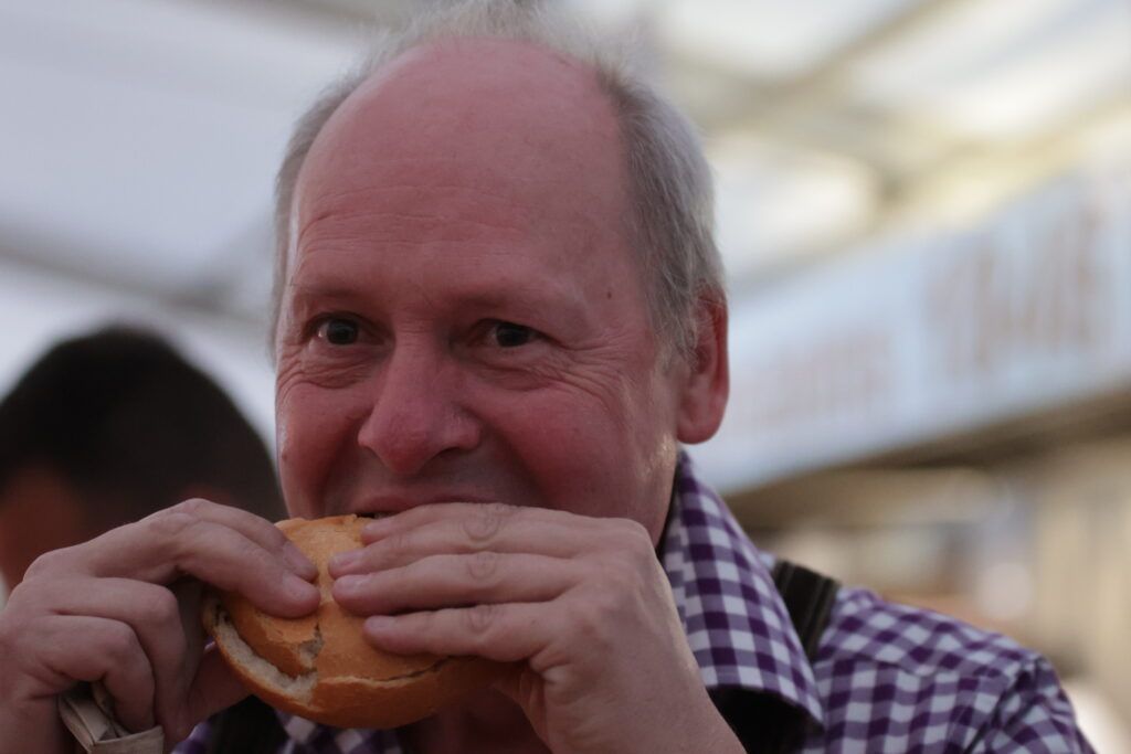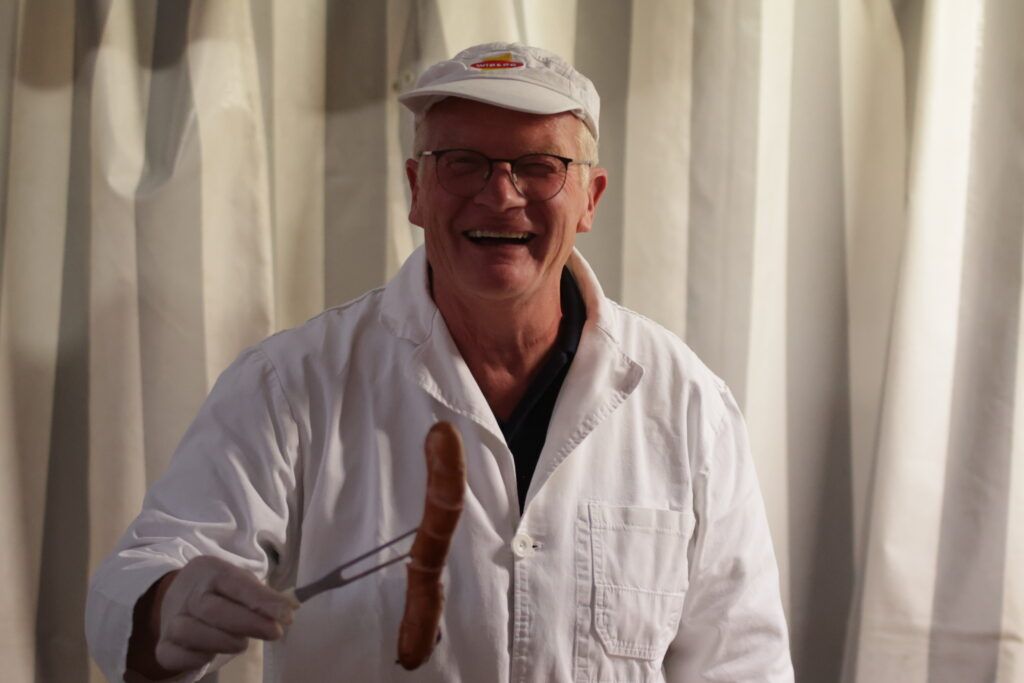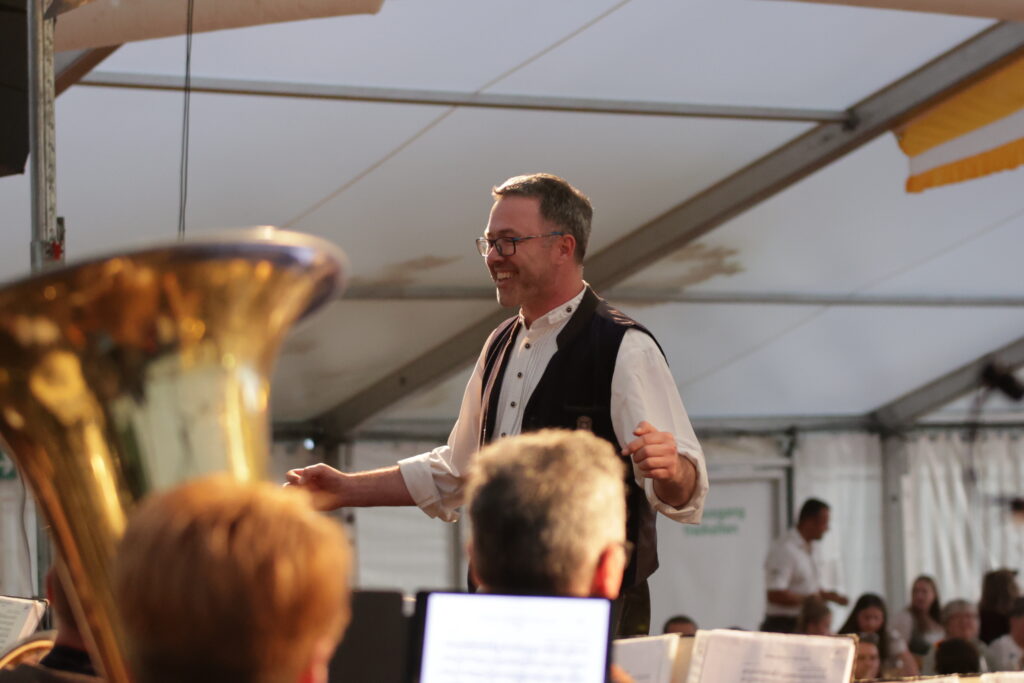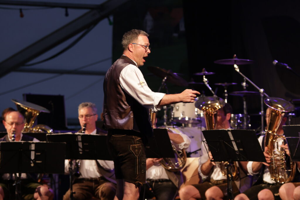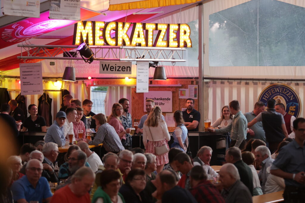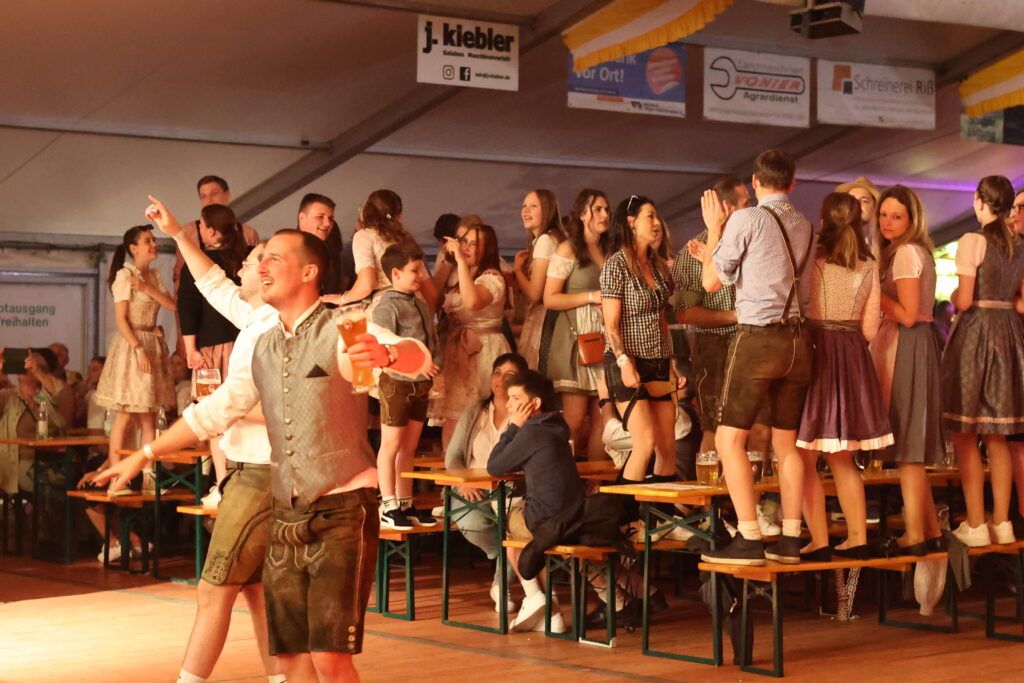 Dann tritt die Illertaler Rockband auf. Mancher älterer Besucher fummelt jetzt am Hörgerät herum. Die Neue Deutsche Welle hat es nicht so mit Humba-Humba, jetzt gibt es was auf die Ohren und eine Lichtshow dazu: Die Illertaler Rocker machen was her, die Stimmung steigt. Die Umsätze an Bier und Wurst auch. In Dietmanns ist halt für alles gesorgt. Sogar für das geistliche Leben: Vorstand Markus Riss lädt die Besucher zum Sonntagsgottesdienst ins Zelt ein. Es sie die einzige katholische Kirche, „wo ihr it nakniea müsset!“