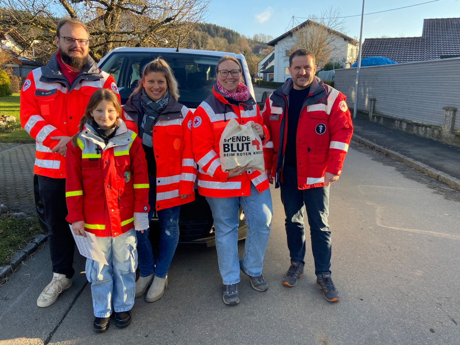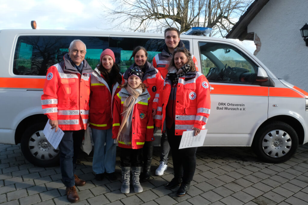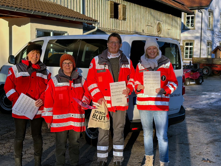 Samstagnachmittag am Vorabend des 2. Advents. Unterwegs mit einem ganz besonderen Sechser-Team des DRK-Ortsvereines Bad Wurzach in Haidgau bei der DRK-Aktion „Licht für die Alten“. Denn neben Fahrer Paul Burrasch, den beiden JRK-Mitgliedern Mira Schad und Pauline Rösch waren mit Petra Greiner, der Vorsitzenden des DRK-Ortsvereines, und Conny Ludescher (dessen Schriftführerin) zwei Vorstandsmitglieder dabei. Internationale Unterstützung bekam die Besatzung des Teams noch durch Ignazio Giacalone aus Sizilien. Genau 15 Mal gab es an diesem Freitagnachmittag mit diesem Team das Ritual in Haidgau und Umgebung: Gemeinsam mit den besuchten, meist alleinstehenden Leuten singen die Rotkreuzler ein oder zwei Weihnachtslieder, dazwischen trägt das JRK-Mitglied im Team ein kleines Weihnachtsgedicht vor, ehe dann die Gruppe die DRK-Jutetasche mit den Geschenken an die Senioren übergibt. „Die Menschen haben mit glänzenden Augen mitgesungen. Es ist immer berührend, wie sie sich freuen, dass man Zeit mitgebracht hat“, freut sich Petra Greiner.