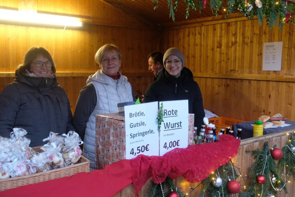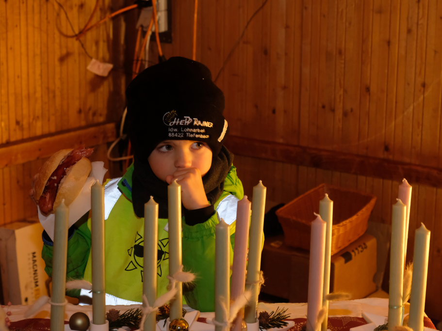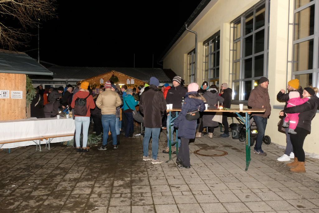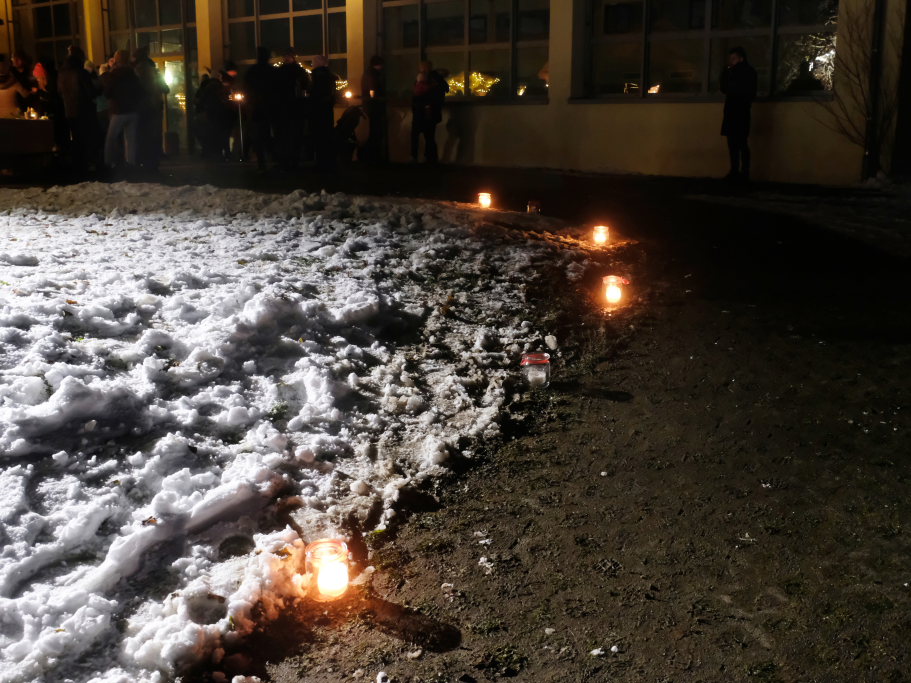 Also musste etwas Neues geschaffen werden. Und so kam es, dass nun die Mitglieder des Kirchenchores Bredla backen durften und die Kirchengemeinderäte etwa für den Getränkenachschub, für Glühwein, Punsch und Kaltgetränke am Vorabend des Totensonntags auf einem der kleinsten und zeitlich kürzesten Weihnachtsmärkte der Region zuständig wurden. Der städtische Bauhof steuerte drei seiner Veranstaltungshütten bei und für die Beleuchtung vom Parkplatz hinauf zum Schulhof bei der Friedrich-Schiedel-Halle wurden mit Teelichtern in Einweckgläsern gesorgt.