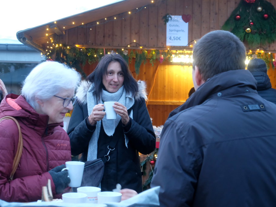 Gemütliches Beisammensein bei Glühwein und roter Wurst.