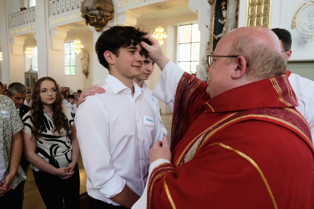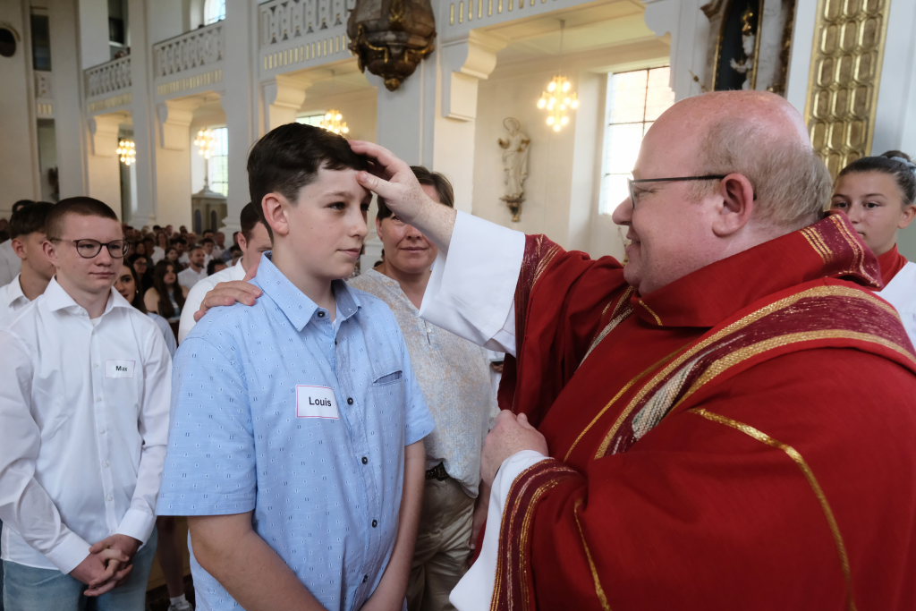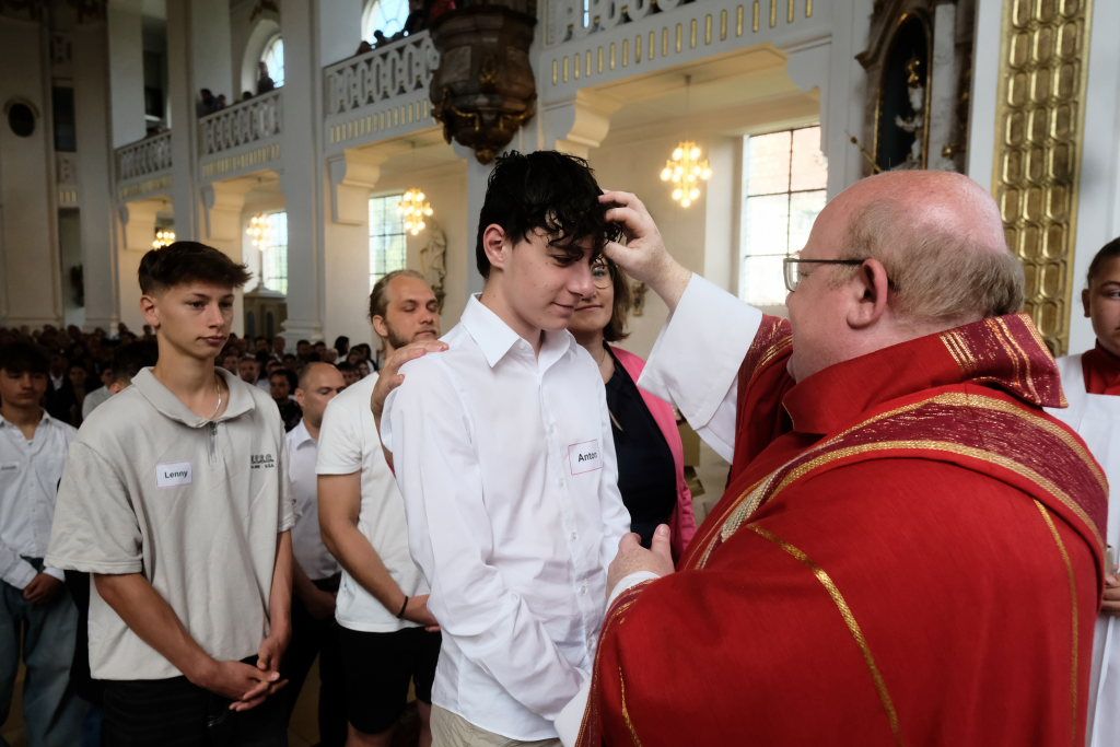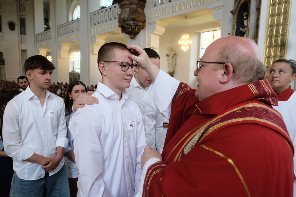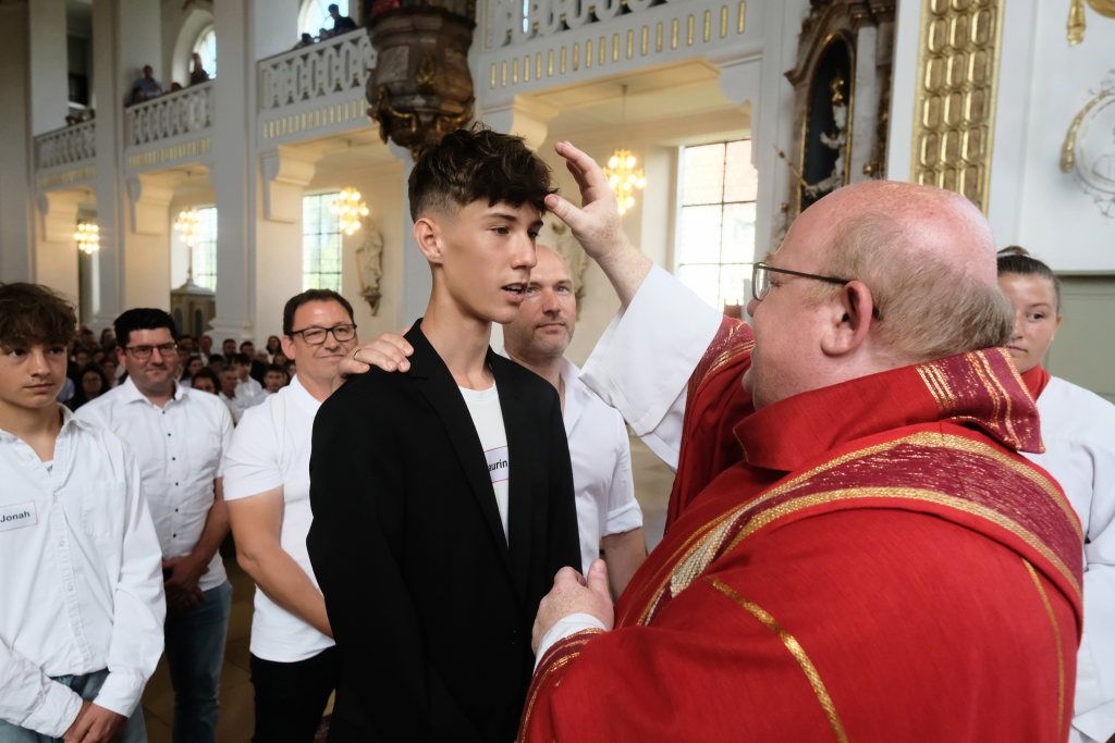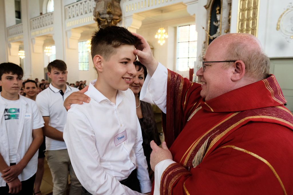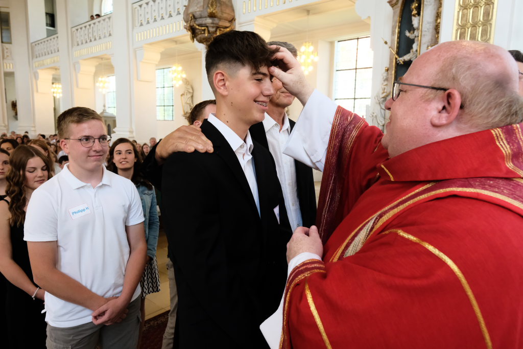 Domkapitular Thomas Weißhaar zauberte Firmbewerbern in St. Verena ein Lächeln auf das Gesicht