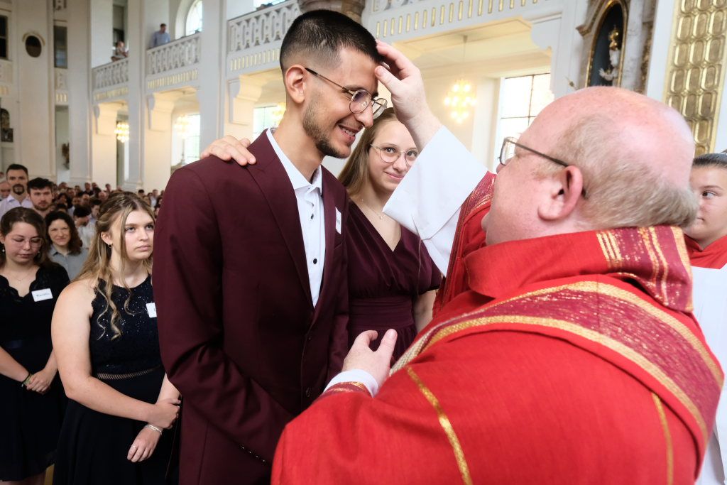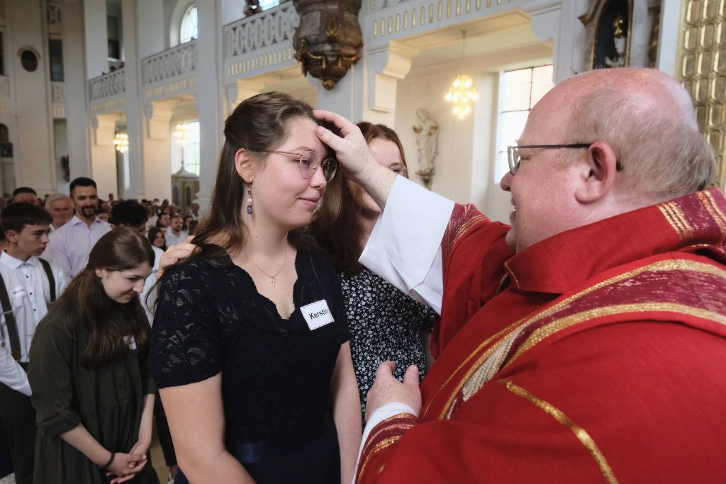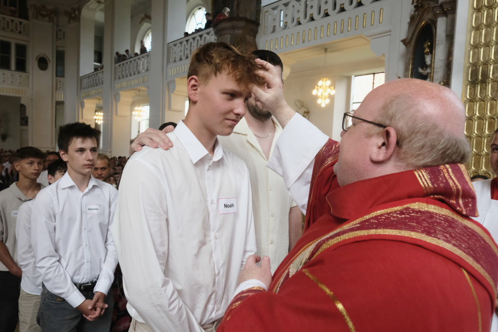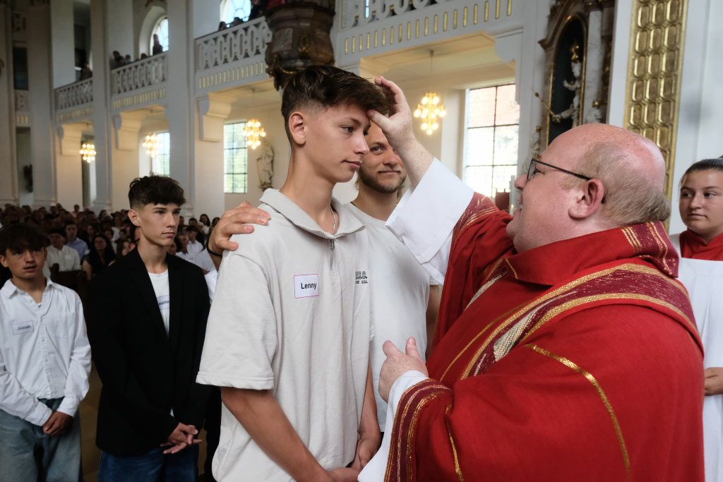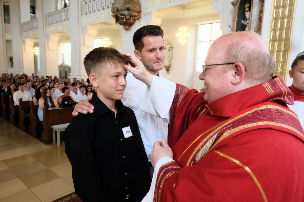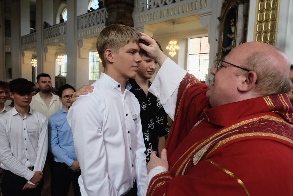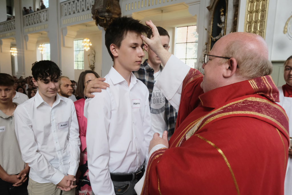 Domkapitular Thomas Weißhaar zauberte Firmbewerbern in St. Verena ein Lächeln auf das Gesicht