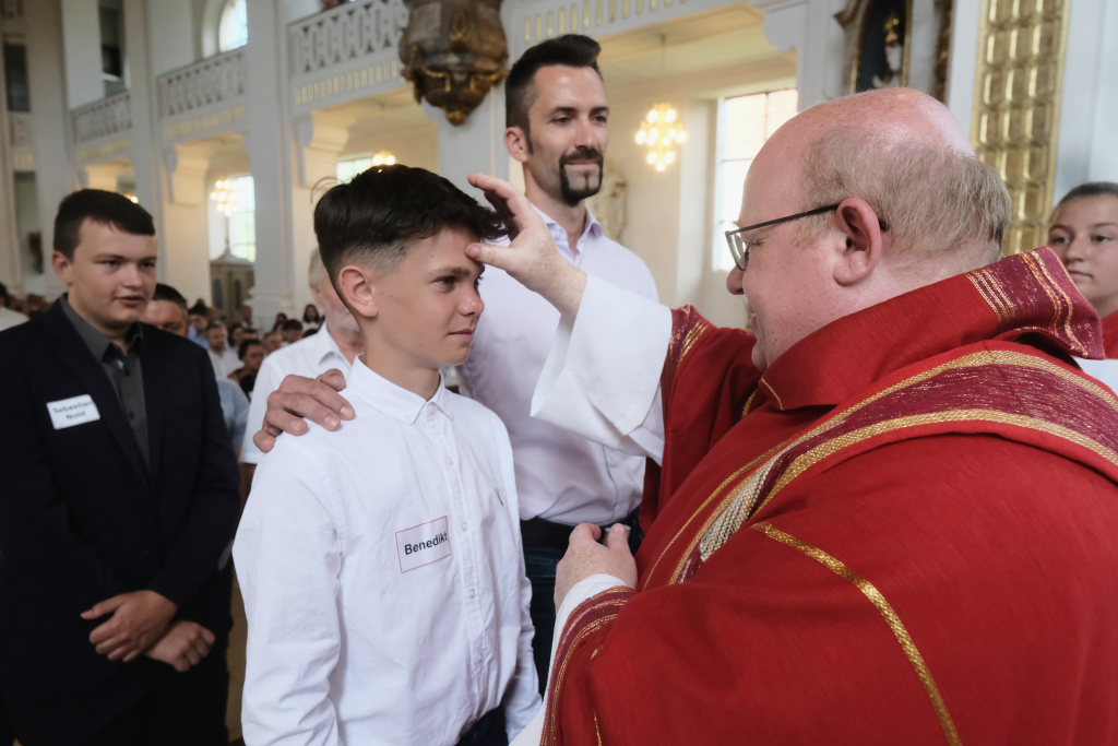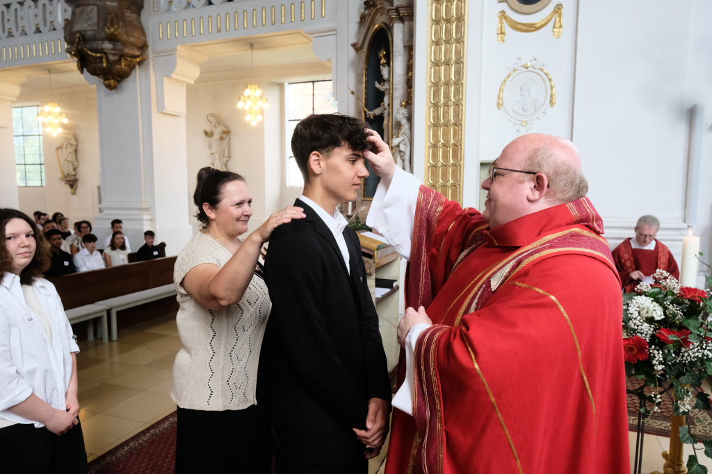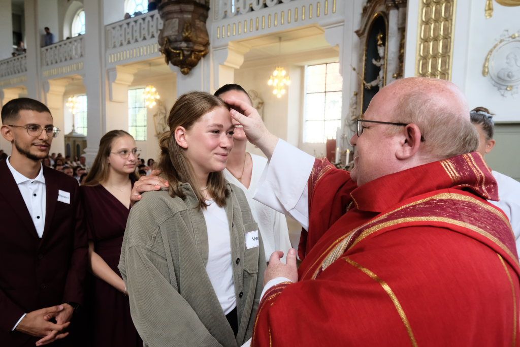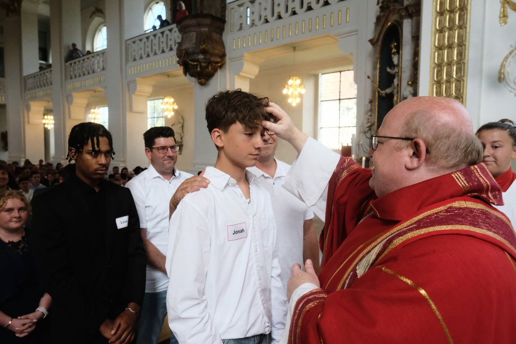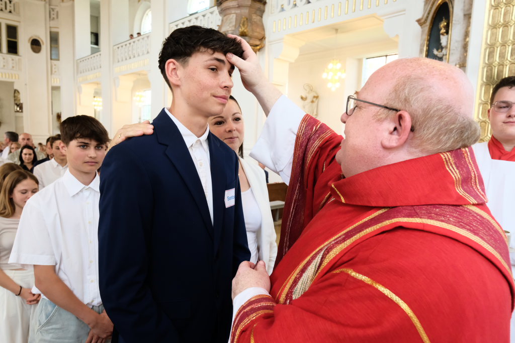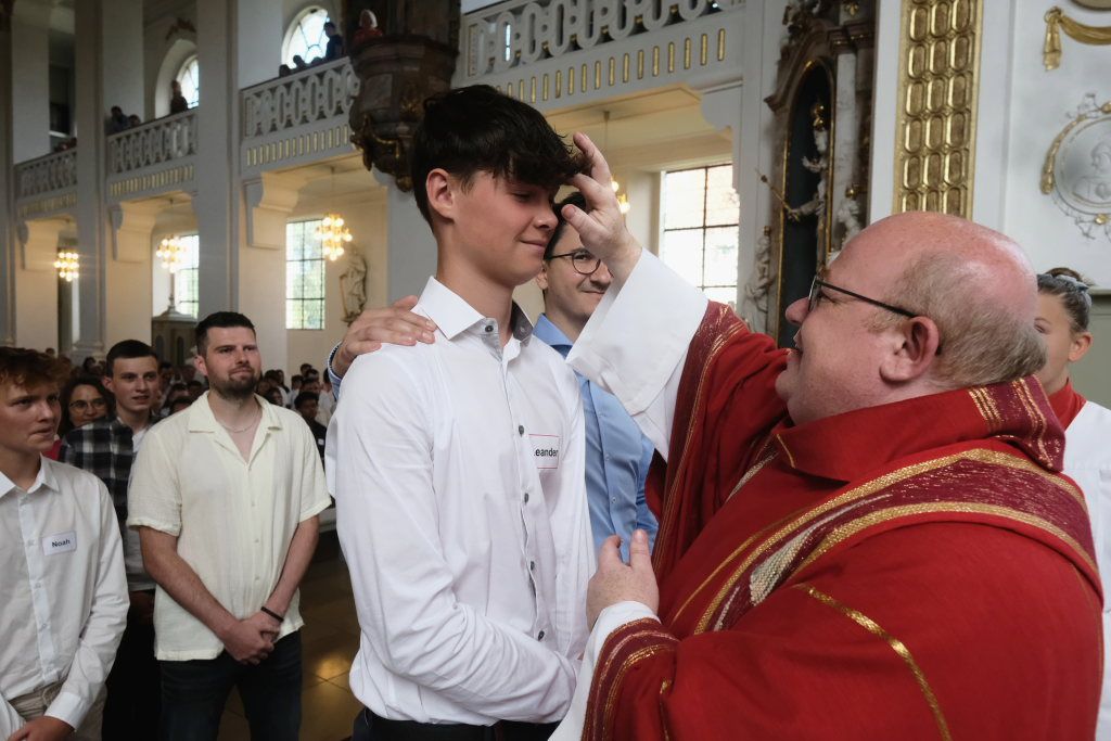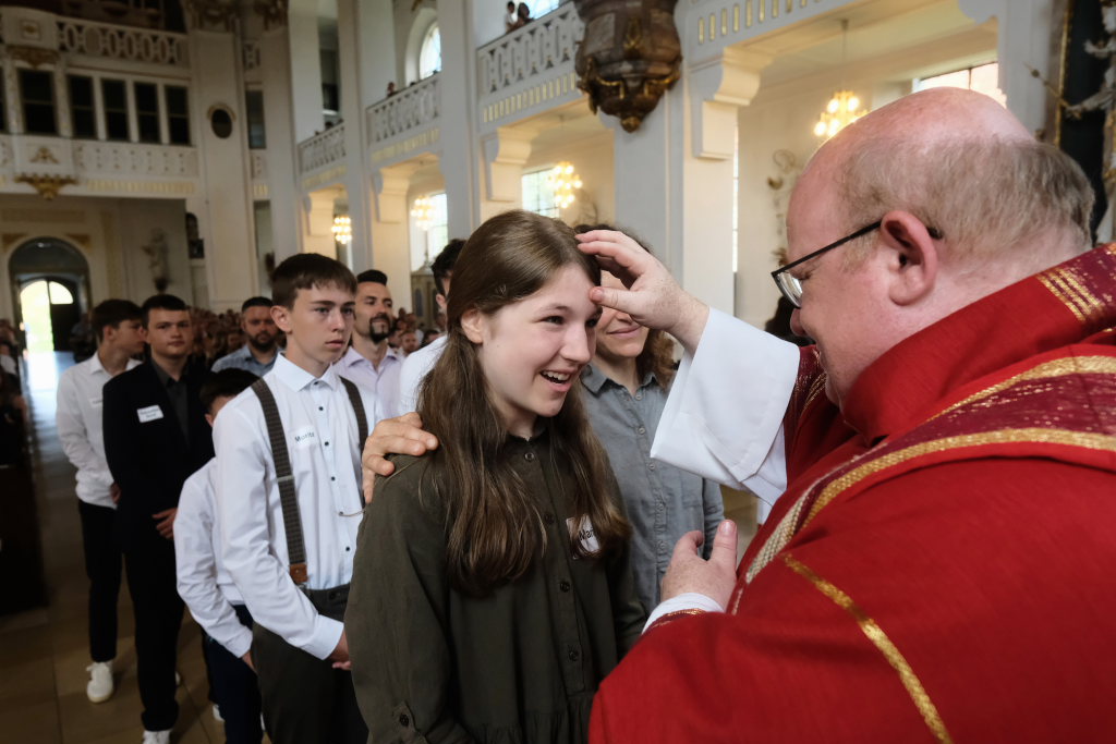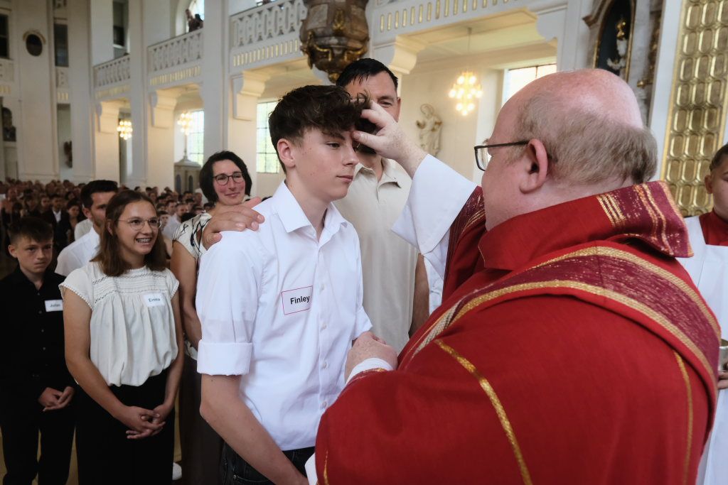 Domkapitular Thomas Weißhaar zauberte Firmbewerbern in St. Verena ein Lächeln auf das Gesicht