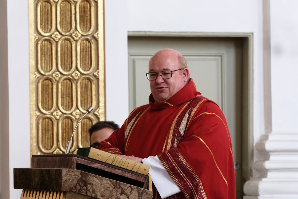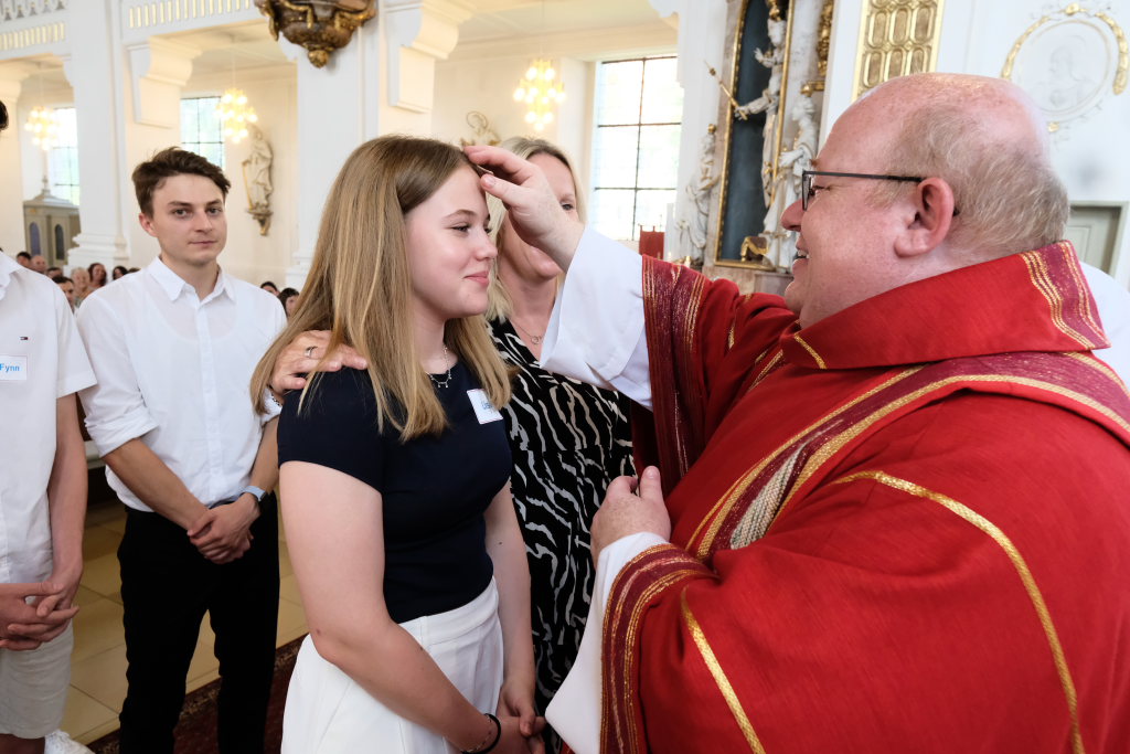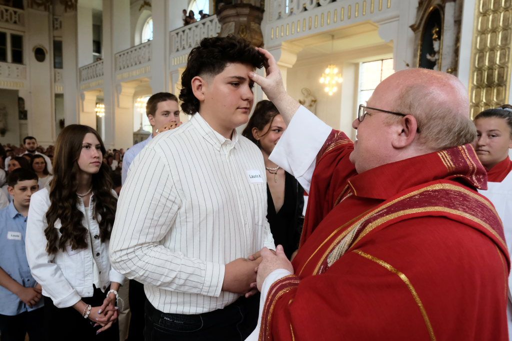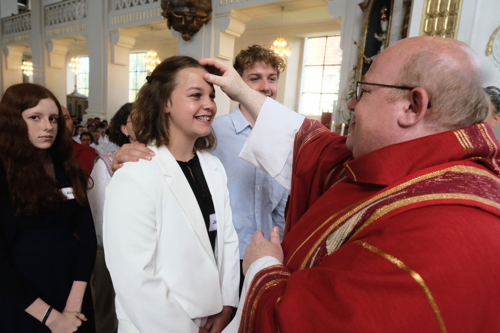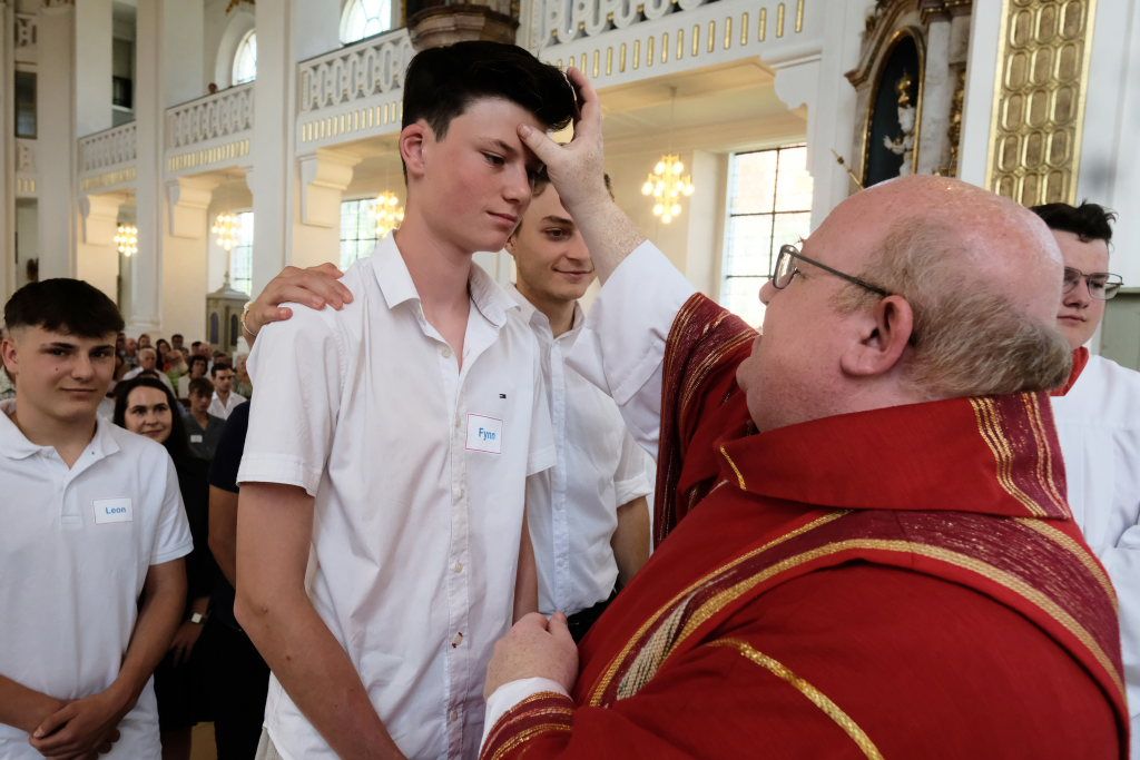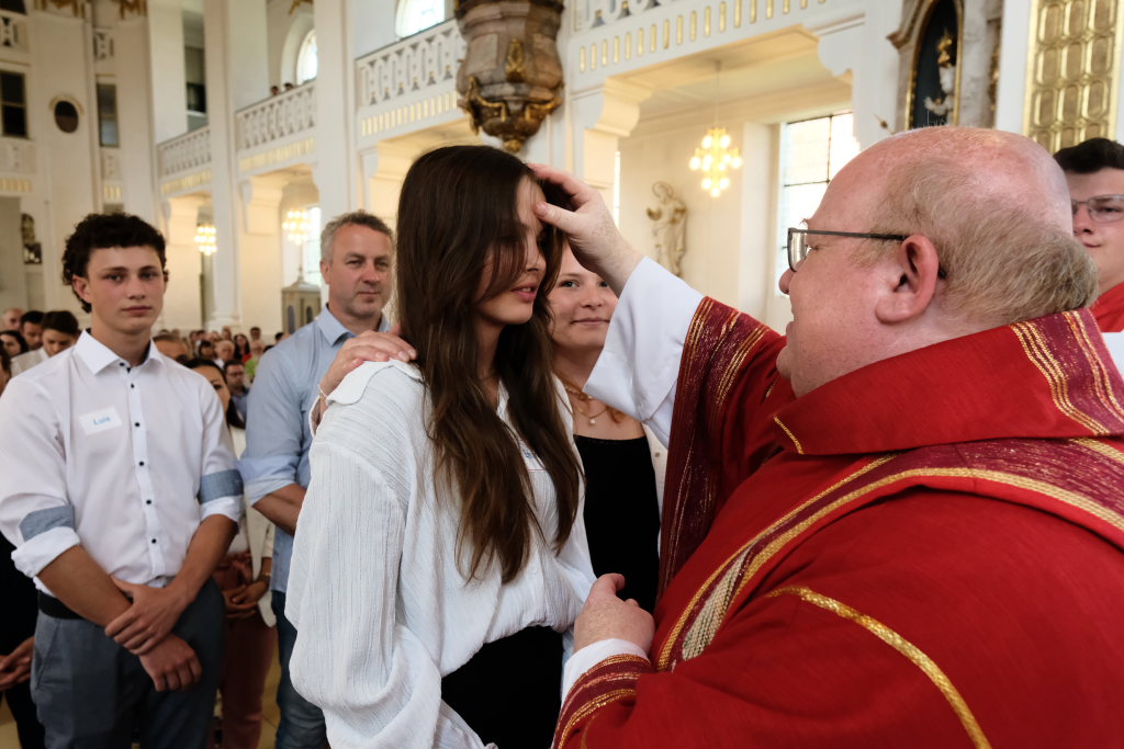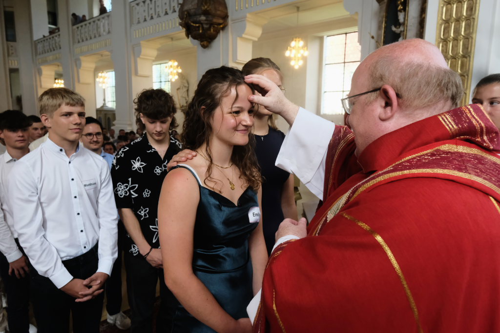 Domkapitular Thomas Weißhaar zauberte Firmbewerbern in St. Verena ein Lächeln auf das Gesicht