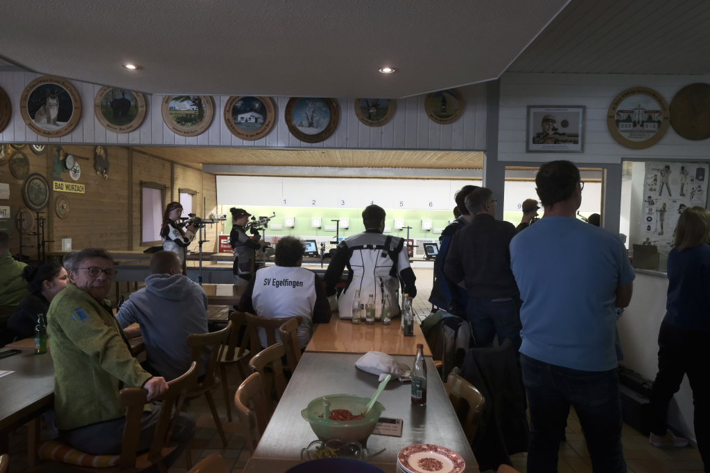 Bereits lange vor dem ersten Schuss gab es aufregende Momente: Weil bei ihrem Gewehr der Lauf defekt war, musste an der Waffe von Elisa Klatte vor dem Wettkampf gegen den SV Grünmettstetten II der Lauf ausgewechselt werden. Damit musste die an fünf gesetzte Schützin ihren Mannschaftspunkt praktisch kampflos abgeben, sie verlor ihr Duell gegen Kai Kocheise entsprechend deutlich mit 352:372. Joachim Vonier auf Position vier musste nach einem 376:376 Wettkampf gegen seinen Gegner Noah Brissaud ins Stechen, das er mit einem Zehner für sich entscheiden konnte. Jan Mennig auf Position drei gelang gegen seinen direkten Gegner Sebastian Schwartz mit 376: 372 den direkten Mannschaftspunkt. Dieser blieb Steffen Loritz verwehrt, der zwar mit einer 96er Serie stark in den Wettkampf kam, dann jedoch in den beiden letzten Serien die beiden entscheidenden Ringe zum 379:281 gegen seine Gegnerin Antonia Trautner verlor. Die Entscheidung fiel damit auf Position eins, wo Anna Gütler es mit Madeleine Gaiser zu tun hatte. Nach den 40 Schuss stand es Unentschieden 382:382. Dann wurde es dramatisch: Nach drei Stechschüssen, bei den beide Konkurrentinnen jeweils eine 9 schossen, brachte erst der vierte Stechschuss mit 8,9: 10,2 die Entscheidung für den Gast aus dem Nordschwarzwald.