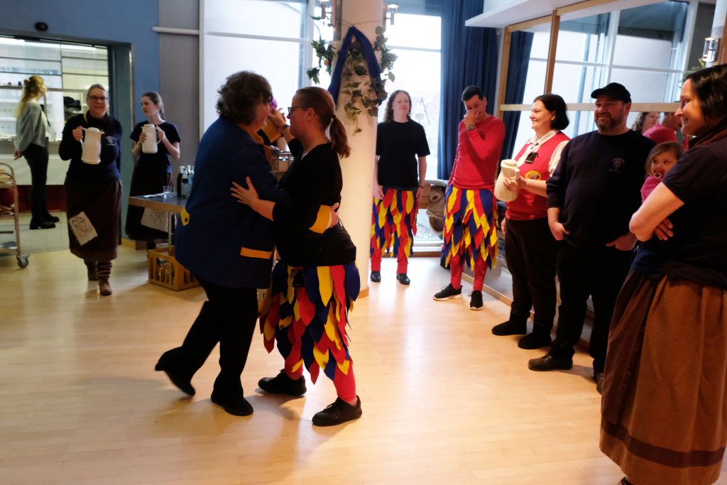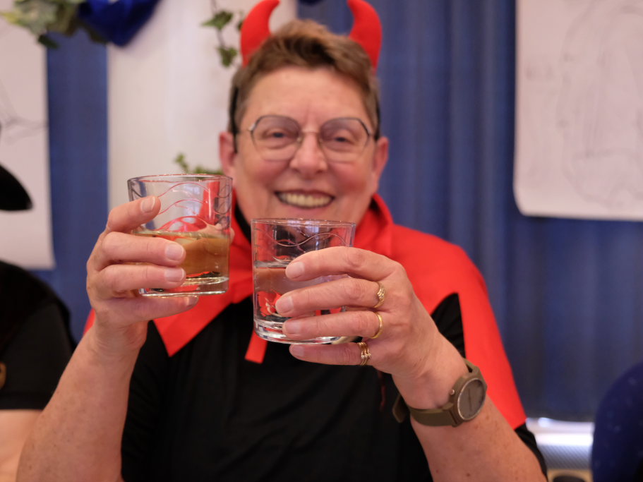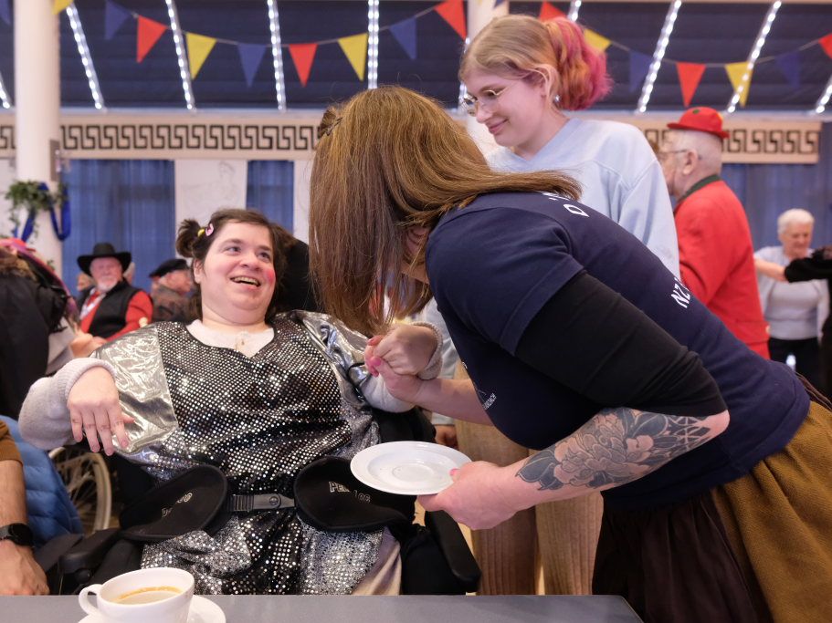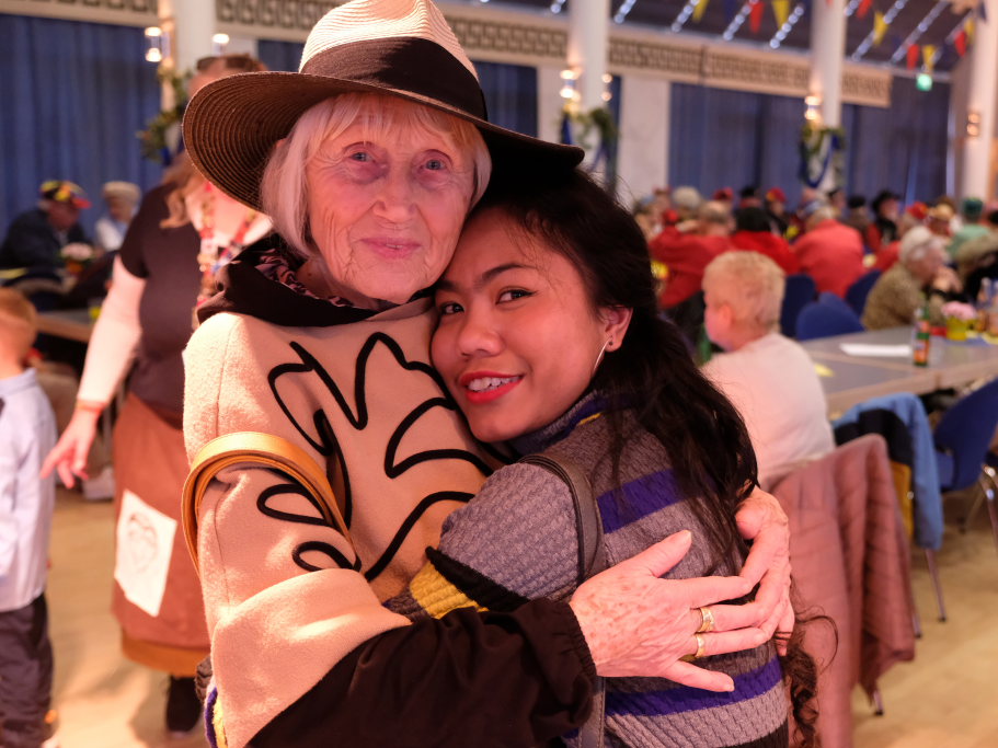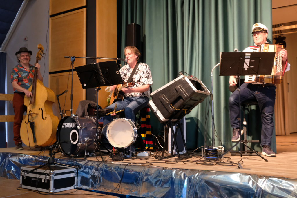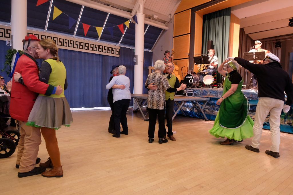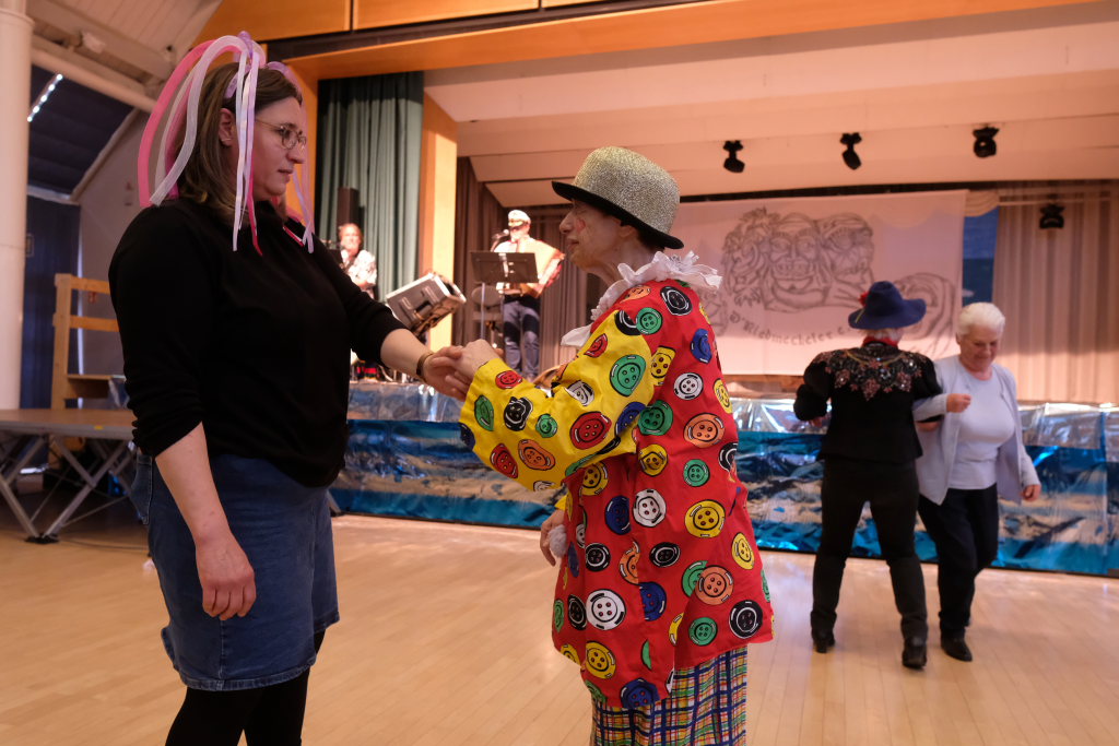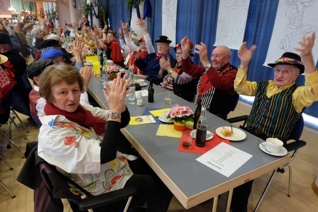 Tatsächlich brachten es Ede Butscher und seine Mitstreiter fertig, die Senioren mit Country roads, Ring of fire oder eine deutsche Schlagerparade aus den 70ern auf die großzügig bemessene Tanzfläche zu locken. Mit Schunkelrunden aktivierte die Band sie auch auf ihren Sitzplätzen. Nicht fehlen durften natürlich beim Ball der Senioren die Bewohner von St. Hedwig, zu denen die Narrenzunft der Riedmeckeler seit vielen Jahren eine enge Freundschaft pflegt. Auch von ihnen schwangen einige das Tanzbein bei den Tanzrunden zwischen den Programmpunkten.