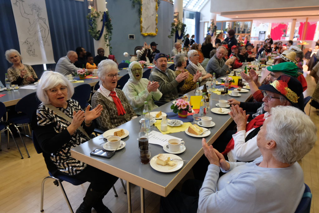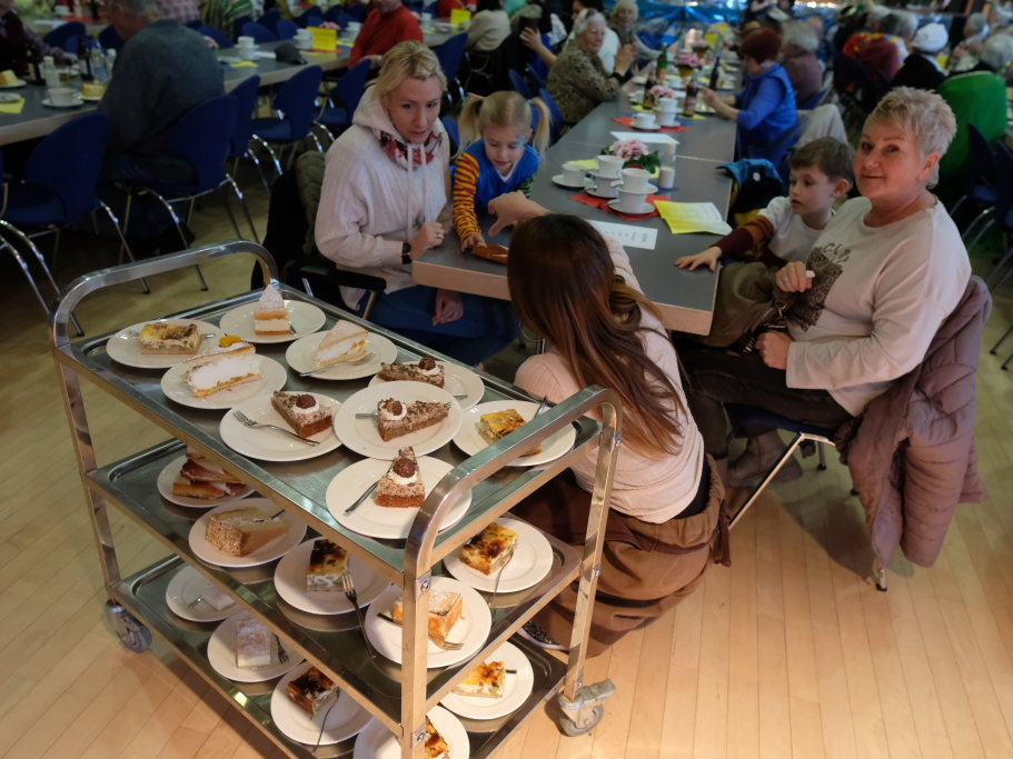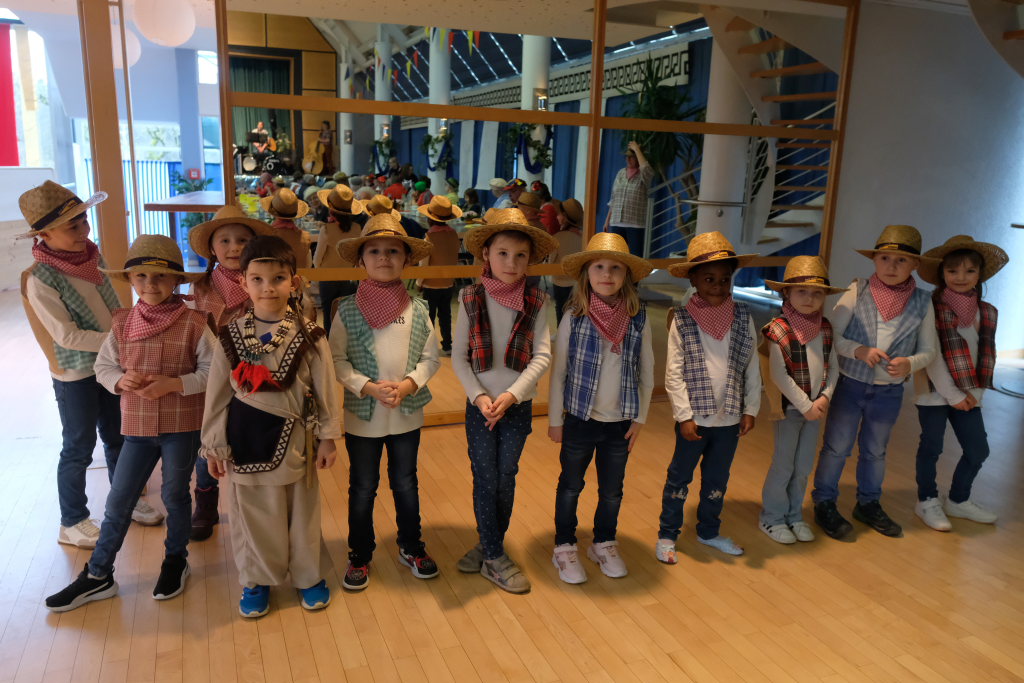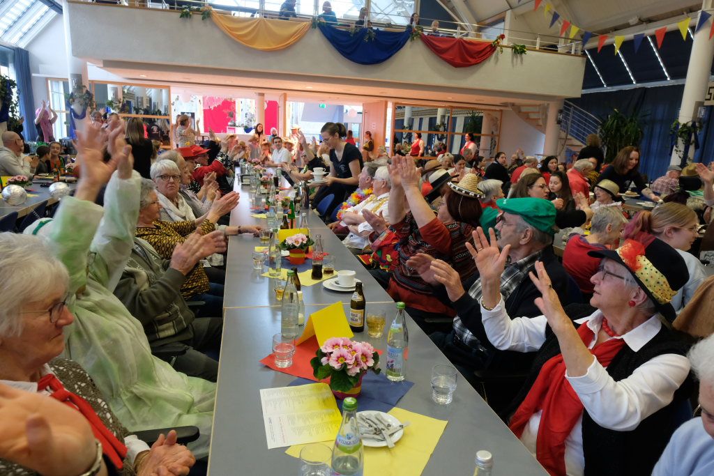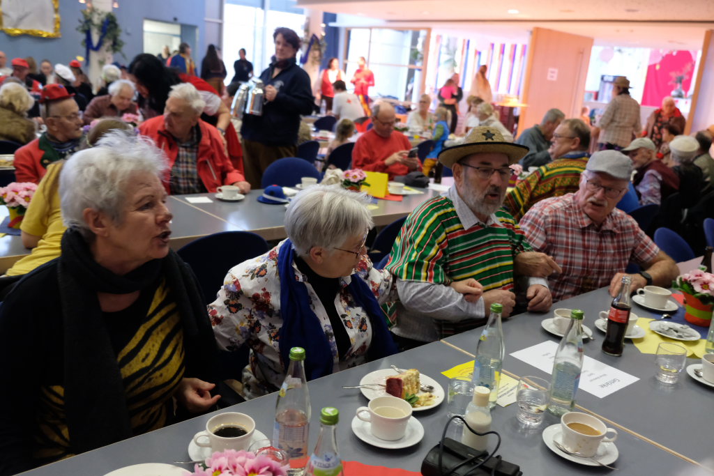 Den Auftakt machten, nachdem sich die Gäste mit Kaffee und Kuchen, Butterbrezel und Laugenstange – übrigens alles gespendet – gestärkt hatten, die Kinder des Kindergartens Regenbogen mit ihrem Tanz „Der Gorilla mit der Sonnenbrille“. Ihnen folgte, nachdem Ede Butscher einige Gassenhauer, die einige der Senioren noch aus ihrer Jugend kannten, wie etwa „Die Fischerin vom Bodensee“ oder auch Schlager aus den Siebziger angestimmt hatte, der Kindergarten St. Verena mit seinem Cowboy-Dance.