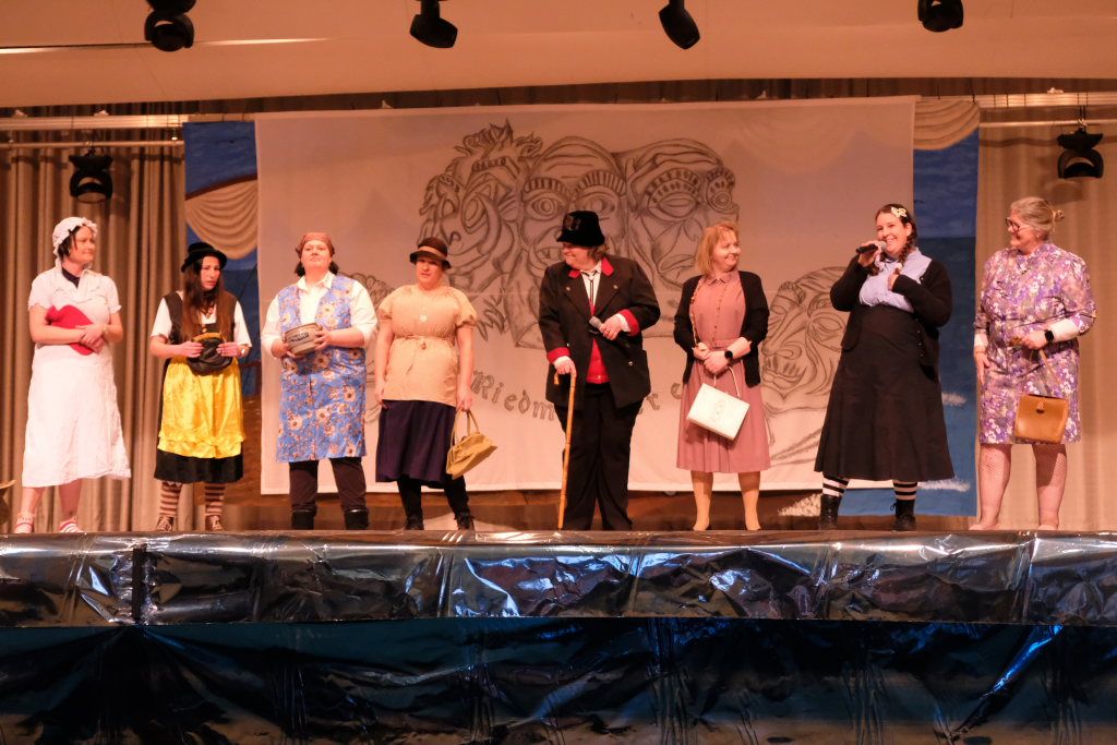 Höhepunkt des Seniorenballes aber war das „Schachtelballett“, denn wie überall kommt das Beste bekanntlich zum Schluss. Denn das, was zunächst wie eine etwas ungelenk daherkommende Tanzvorführung einiger in die Jahre gekommener älterer Damen daherkam, entpuppte sich als feine Musik-Comedy von den Damen des Zunftrates, die alle in ihren besten Jahren stehen. Die bei der Suche nach einem männlichen Partner bei ihrer knallharten Gesangsanalyse ihre eigenen Vorzüge, aber auch ihre eigenen Schwächen zum Ausdruck brachten.