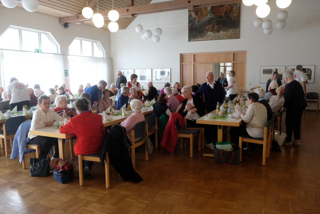 Bad Wurzach – Zum nunmehr dritten Mal – Premiere war bereits 2019 – lud der DRK-Ortsverein Bad Wurzach zum Senioren-Frühjahrs-Kaffee-Treff ins Pius-Scheel-Haus ein. Rund 70 Senioren/innen waren am Samstagnachmittag (2. März) ins Katholische Gemeindehaus gekommen, um gemeinsam zu singen und bei Kaffee und Kuchen sich nett zu unterhalten.