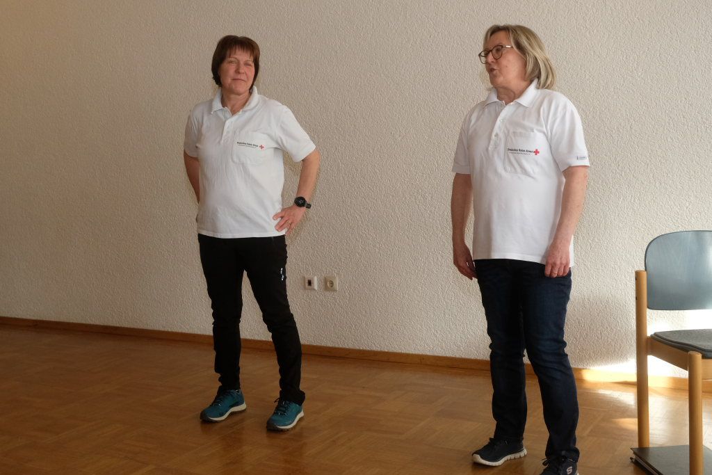 Hatte im vergangenen Jahr die Tanzgruppe Habibi („mit 257 Jahren Frauenpower“) für eine beeindruckende Tanzvorführung gesorgt, beeindruckte in diesem Jahr eine gemischte Tanzgruppe der DRK-eigenen Seniorengymnastikgruppen von Rosi Rast und Silvia Neubauer. Neben der Eigenwerbung von Rast und Neubauer für ihre Gymnastikgruppen zeigte Rosi Rast aber auch, was die Senior/innen dort erwarten: Mit einigen kleinen Übungen brachte sie den Gästekreislauf in Wallung.