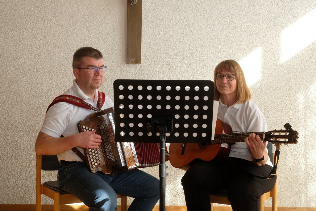 Frank Fässler an der Steirischen und Cornelia Schmid an der Gitarre begleiteten die musikalischen Frühlingsausflüge der Senioren, während ein etwa zehnköpfiges Team des DRK die Besucher mit Kaffee und sehr gutem Kuchen versorgte.