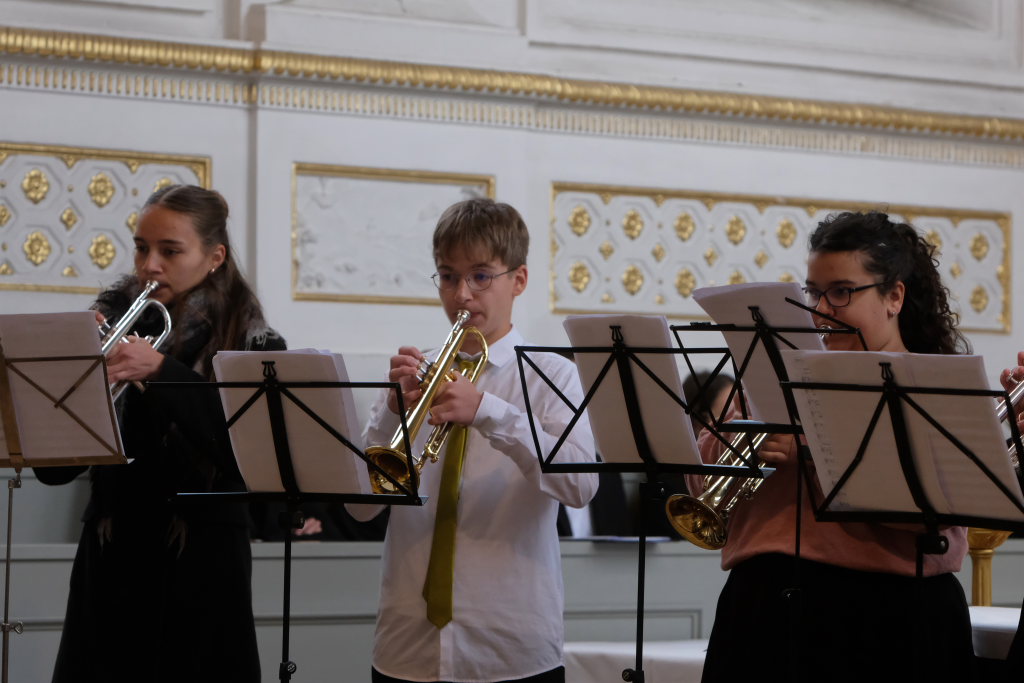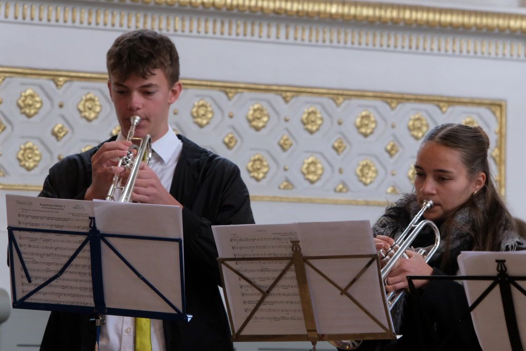 Wie sagte Schulleiter Klaus Amann, der sich sehr über den großen Publikumszuspruch freute – die Kirche war praktisch „ausverkauft“ – in seiner Begrüßung: „Sie sehen hier im Laufe des Konzertes 27 Musikerinnen und Musiker, welche die Abiturjahrgänge 1991 bis 2029 vertreten. Darunter auch einmal Vater und Sohn.“ Ebenfalls gab es unter den Musikern mehrere Geschwisterpaare.