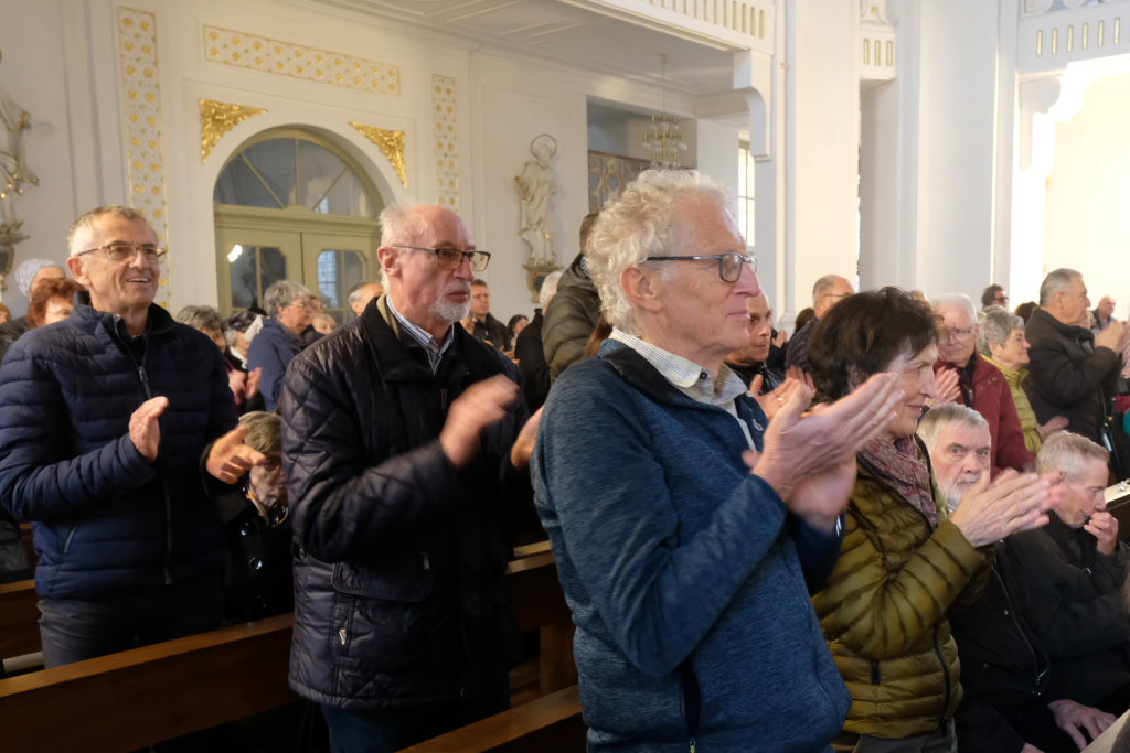 Mit dem „Einzug der Königin von Saba“ aus dem Oratorium „Solomon“ von Georg Friedrich Händel zum Abschluss rissen die Musiker jeden Besucher von seiner Kirchenbank. Das Ensemble erhielt als Lohn für seine Leistung stehende Ovationen. Selbstverständlich gab es dafür im Gegenzug noch eine Zugabe: Das berühmte „Ave Maria“ in einer Bearbeitung von Peter Schad.