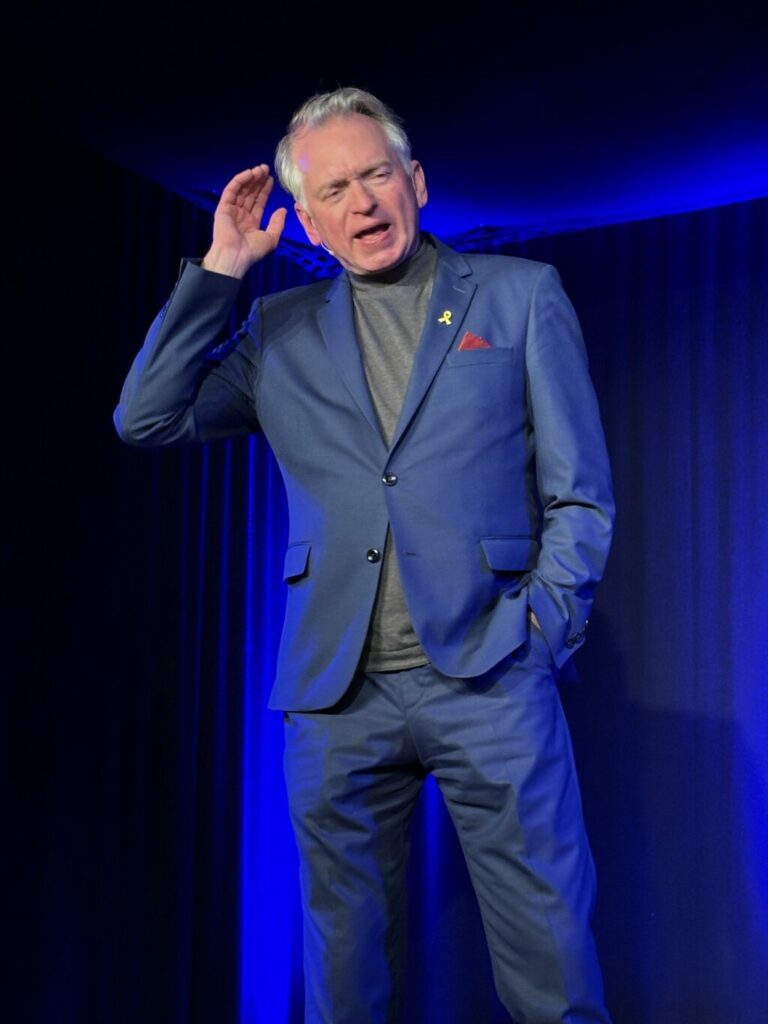 Daheim in Deutschland engagiert sich Springer für die, wie er selbst sagt, Erinnerungskultur. Letztes Jahr um diese Zeit stellte er gemeinsam mit seiner Initiative „Schulterschluss am Isartor“ in München einen sechs Meter hohen Stuhl auf, der an den Hitlerputsch vor 100 Jahren erinnern sollte. Die Installation „Alles rief heil. Ein Stuhl, auf dem der Weg in Diktatur und Vernichtung begann“ mahnt. Ein Satz aus seinem aktuellen Programm „Leider“ gibt Hoffnung. „Ich bin überzeugt, dass unsere Demokratie überlebt.“ Auch an diesem Abend hat er ihn dabei.